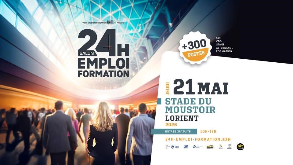 24 h pour l’emploi et la formation est un salon annuel qui favorise l’échange entre entreprises, établissements de formation, financeurs, structures d’aide à l’emploi et candidats. Préparez vos questions et vos CV. Jeudi 21 mai de 10 h à 17 h, salon du port – tribune sud du stade, rue Sarah-Bernhardt, Lorient. Gratuit.