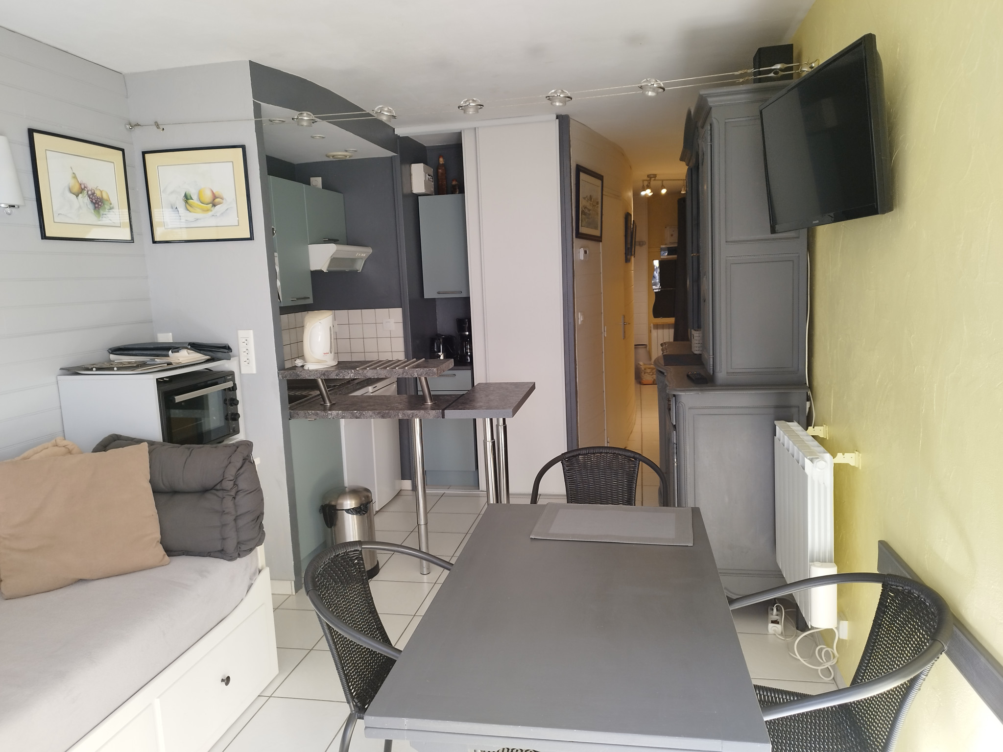 T2 de 30 m² de plain-pied, coin cuisine équipé, plaque , réfrigérateur compartiment congélation, four-grill, four micro-ondes, lave vaisselle, lave-linge.