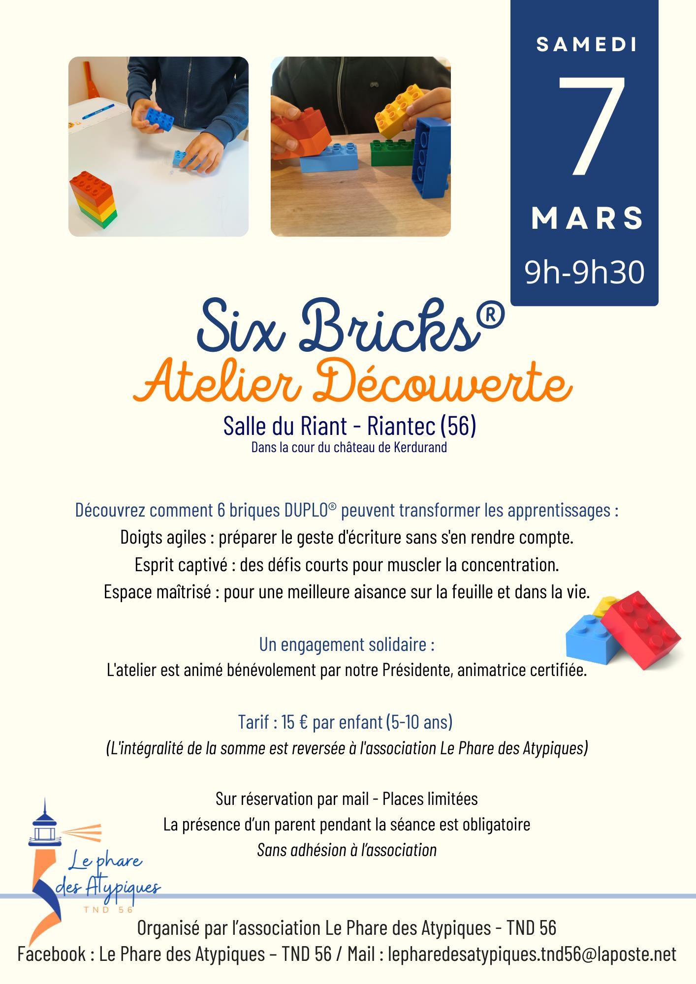 9 h – 9 h 30 : atelier découverte « Six Bricks® »