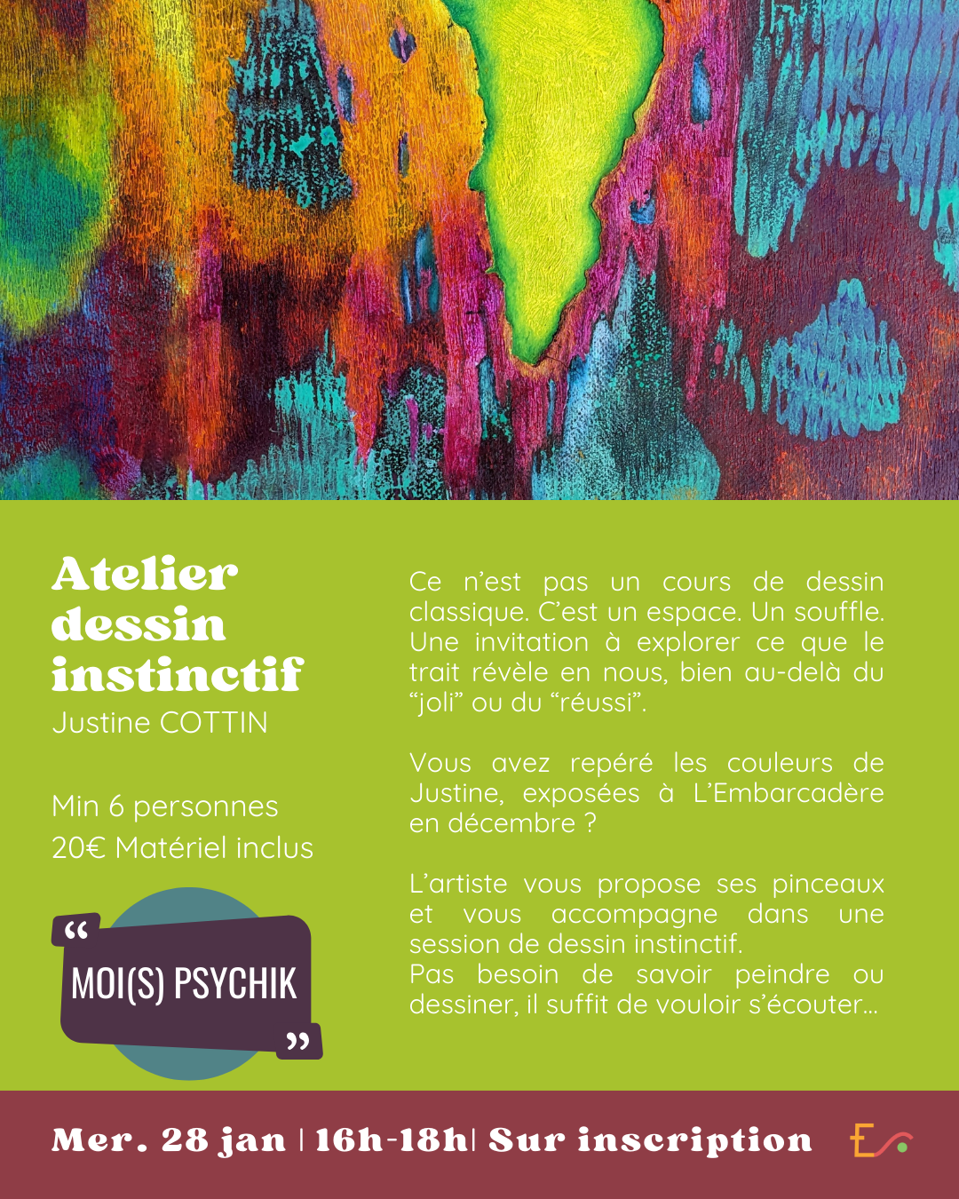 Vous avez repéré les couleurs de Justine, exposées à L’Embarcadère en décembre ?