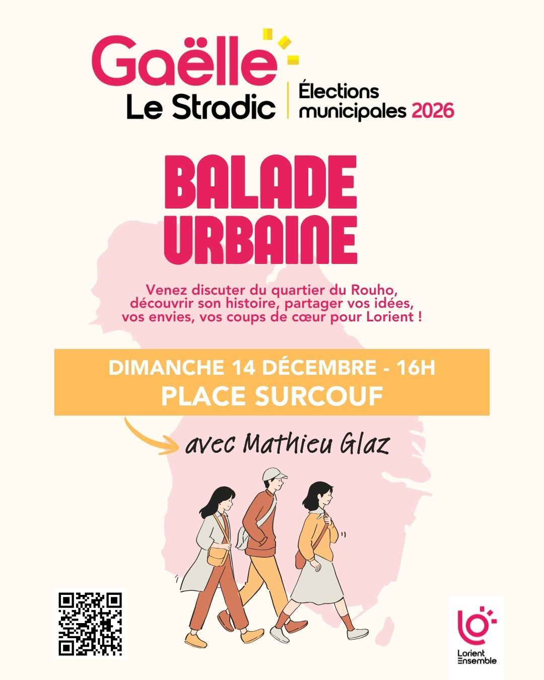 Balade. Venir échanger sur la vie du quartier, découvrir son histoire, du château au faubourg ouvrier, partager ses idées, ses envies, ses coups de cœur et discuter de ses propositions pour Lorient. Balade guidée par Mathieu Glaz, organisée par Lorient ensemble avec Gaëlle Le Stradic. Dimanche 14 décembre de 16 h à 17 h, place Surcouf, Lorient. Gratuit. Contact : 06 44 22 00 60, contact@lorient-ensemble.bzh.