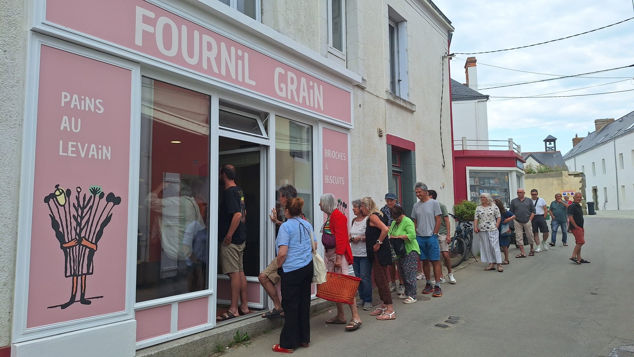 En plein cœur du bourg, derrière la belle vitrine rose bonbon, Céline & Maxime vous proposent des pains 100% au levain : Pain de campagne au levain de seigle, petit épeautre, riz-sarrasin (sans gluten), tourte de méteil, pains aux olives, au cacao …, des gâteaux bretons au sarrasin, des pains de mie moelleux esprit shokupan ou encore le fameux kouign amann.