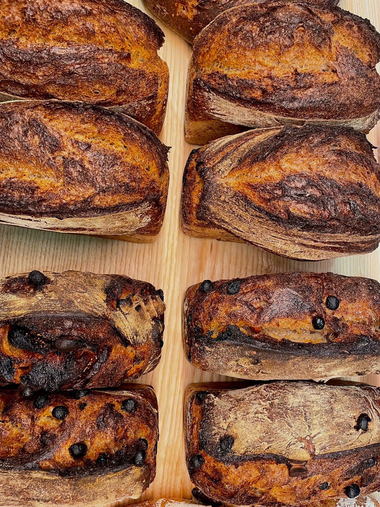 Grâce au levain naturel et à une longue fermentation (18h), les pains dévoilent plus d’arômes, contiennent plus de nutriments, se digèrent mieux et se conservent plus longtemps.