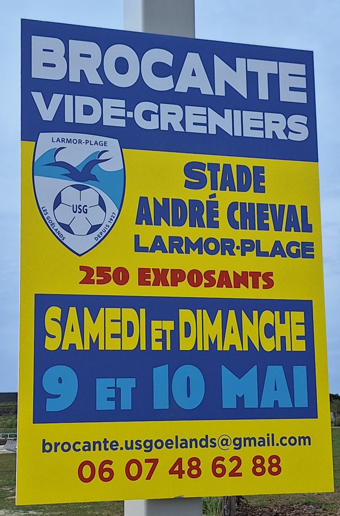 La traditionnelle brocante des Goélands revient pour sa 35ᵉ édition les samedi 9 et dimanche 10 mai 2026, au stade André Cheval. 250 exposants. Horaires visiteurs : 9h à 19h ; entrée visiteurs : 2 € (gratuite pour les moins de 16 ans).
