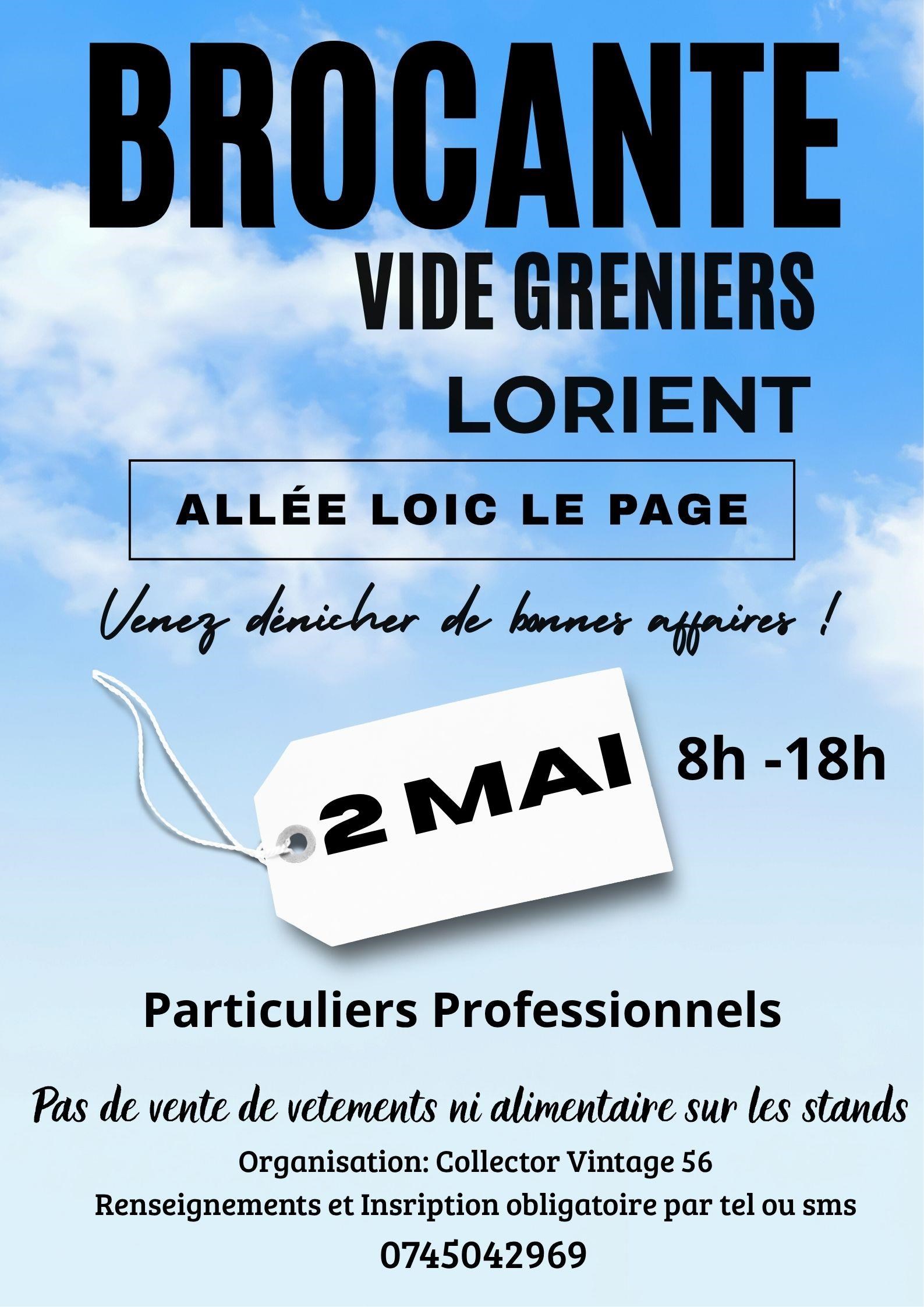 Brocante. Les exposants proposeront des objets de toutes sortes. Brocante sans vente de vêtements ni alimentaire. Samedi 2 mai de 8 h à 18 h, allée Loïc-Le-Page (la Rambla), jardin Jules-Ferry, Lorient. Gratuit.