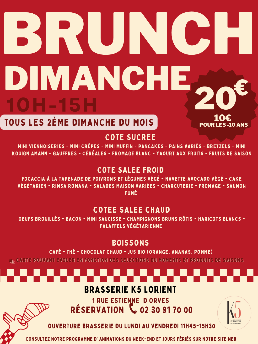 Brunch de 10h à 15h30 en buffet à volonté pour les grands et les petits !