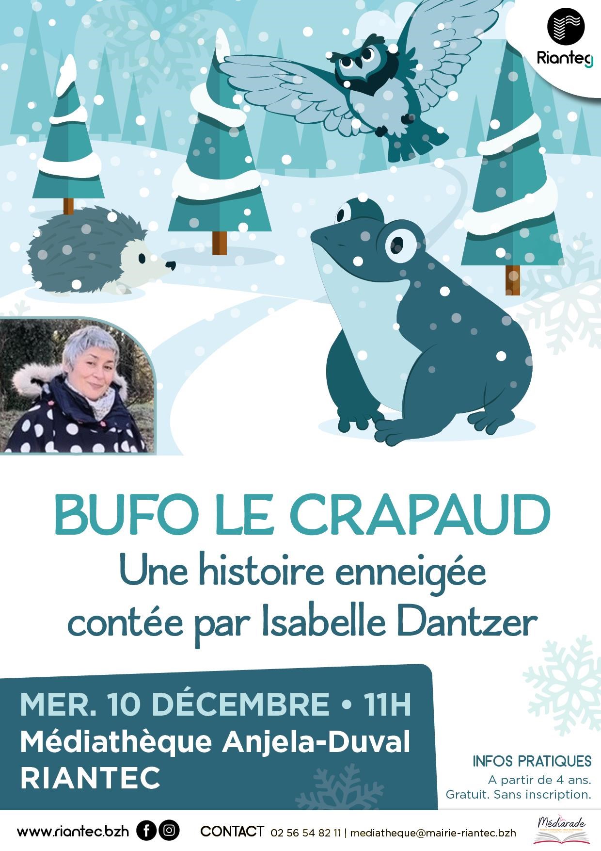 Isabelle Dantzer raconte l’histoire de Bufo le crapaud. Un étrange sortilège frappe les animaux de la forêt. Les voilà transformés en flocons de neige. Le crapaud saura-t-il déjouer le sort ?