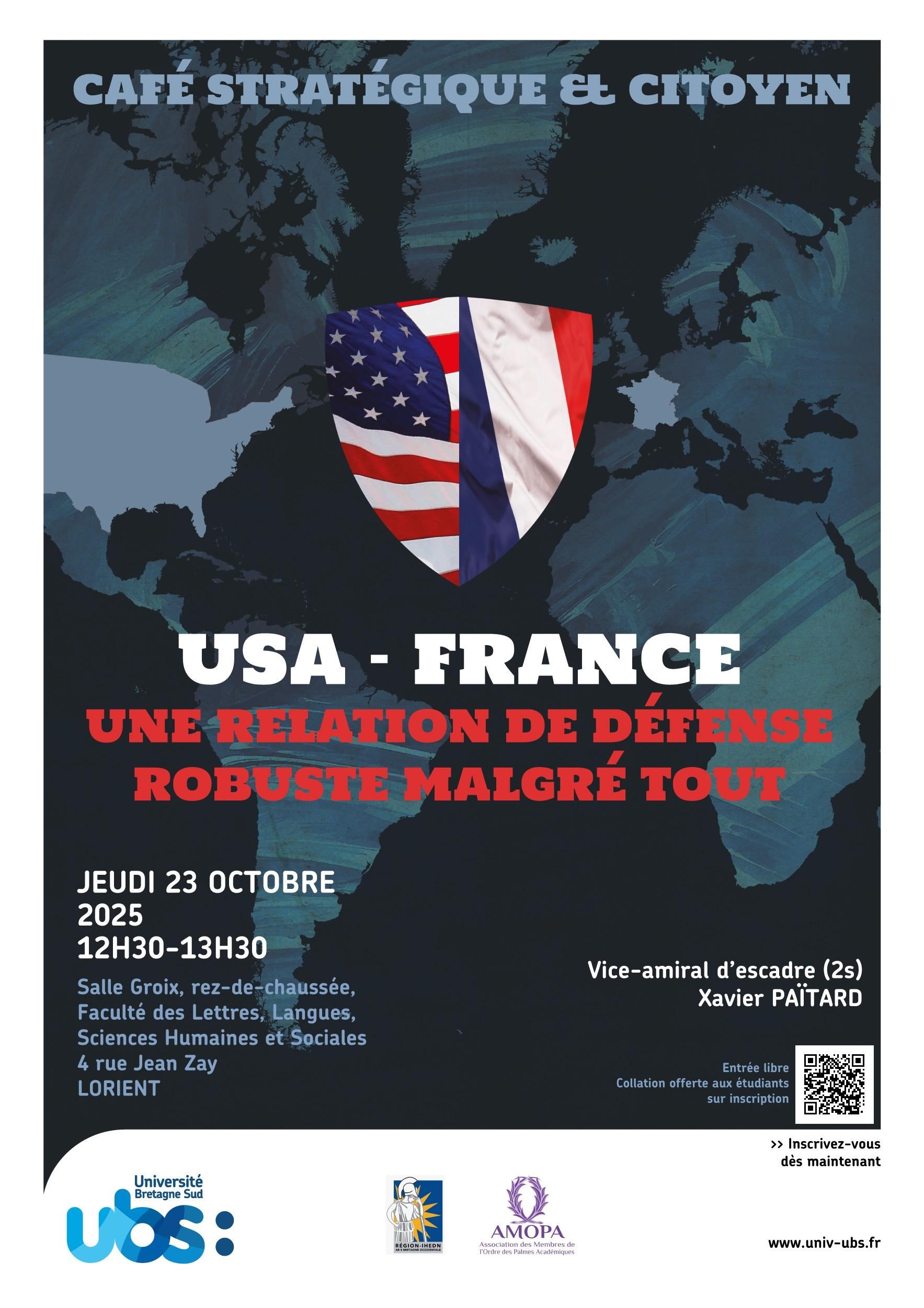 Une relation entre les armées constante et mutuellement bénéfique, emprunte de respect ;Des engagements opérationnels combinés, souvent méconnus ;Des incompréhensions systémiques au niveau des doctrines ;La complexité des relations multinationales et interalliées ;Une compétition industrielle féroce ;Des obstacles politiques fréquents et instrumentalisés.Conférence gratuite et ouverte à tous, dans la limite des places disponibles et sur inscription en ligne.