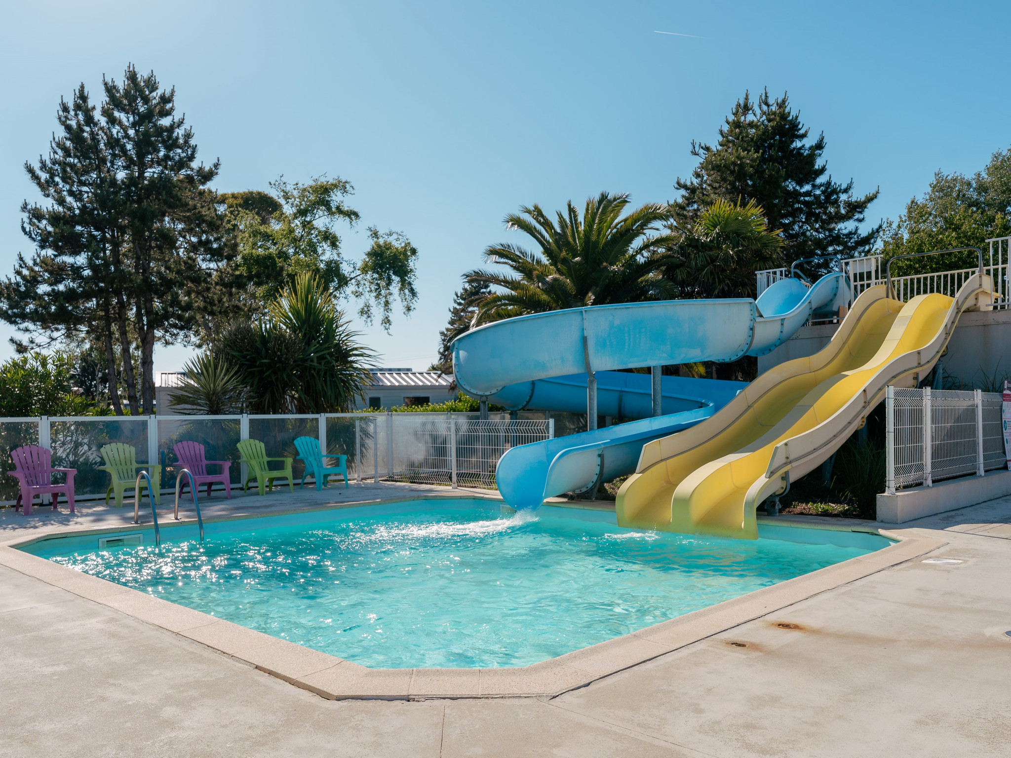 Venez profiter d’un espace aquatique avec piscine couverte et chauffée, piscine extérieure et toboggans. Petits et grands pourront également s’amuser dans nos espaces multisports, aire de jeux avec château gonflable et minigolf gratuit. En haute saison, vous trouverez aussi des animations, mini club et service snack/restauration.