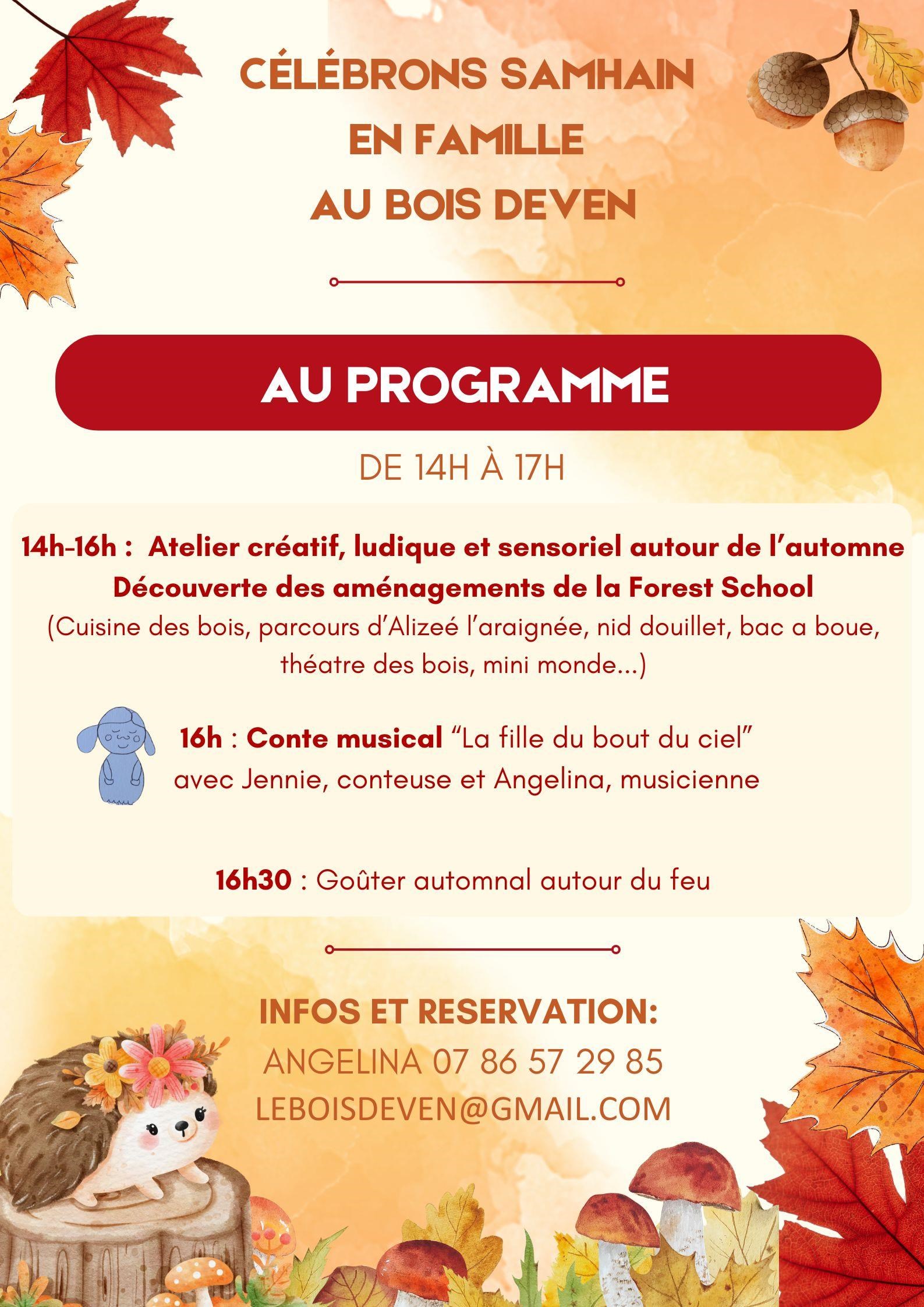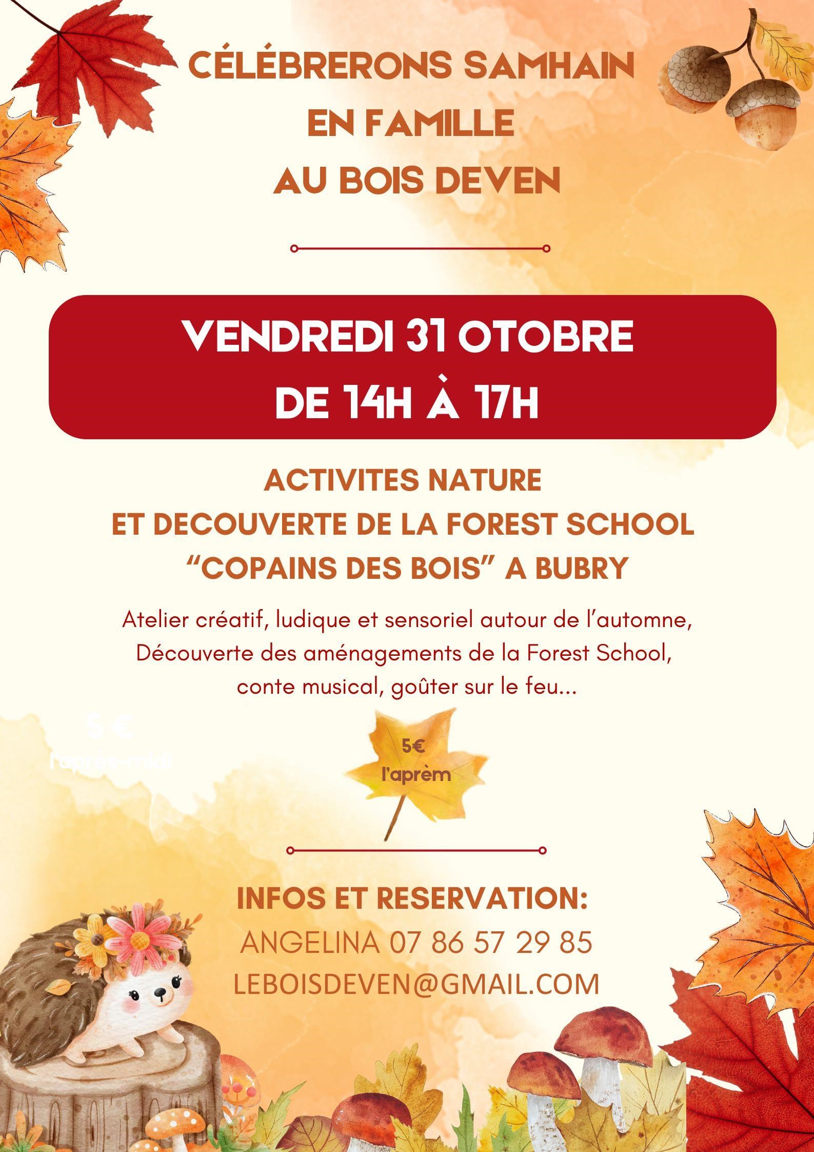 Le vendredi 31 octobre de 14 h à 17 h, La Forest School « Copains des bois » vous propose une après-midi en famille pour célébrer Samhain.