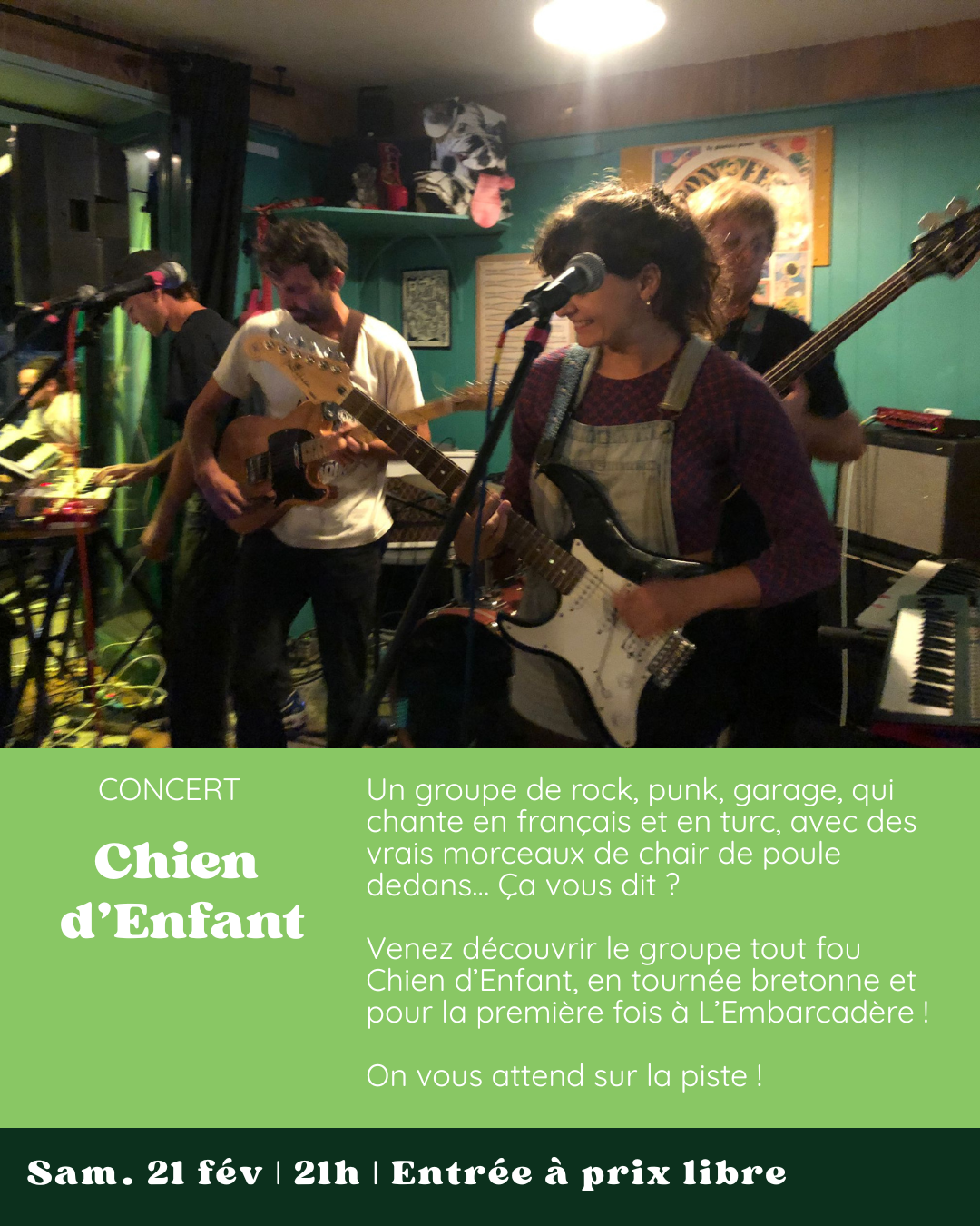 Venez découvrir le groupe tout fou Chien d’Enfant, en tournée bretonne et pour la première fois à L’Embarcadère !