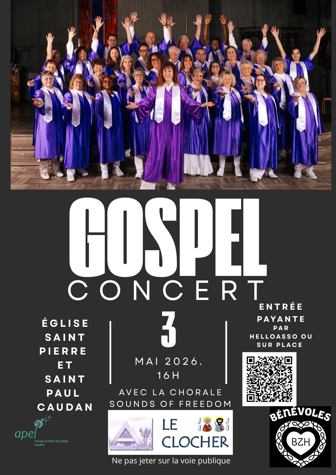 L’Apel Saint Jo Caudan s’associe avec la paroisse de Caudan pour un Concert de Gospel avec le groupe Gospel In Paradise.