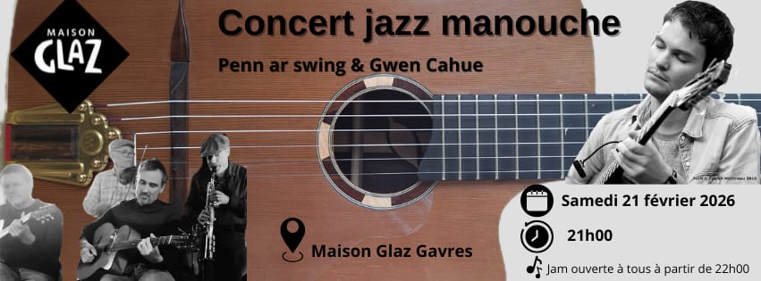 Concert de Jazz manouche avec Gwen Cahue, samedi 21 février à 21h à la Maison Glaz – Gâvres suivi d’une Jam Session à partir de 22h