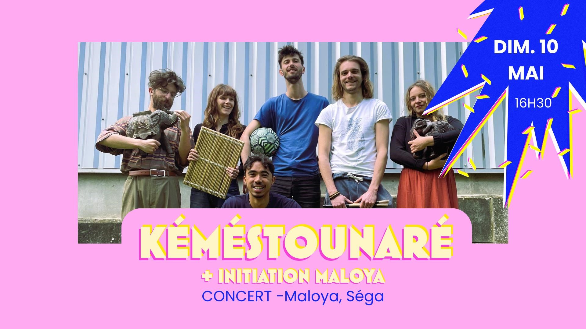 Kéméstounaré est un collectif de musicien.nes réunit autour de la musique de l’île de la Réunion : le Maloya (polyphonies et rythmes traditionnels) et le Séga (musique à danser).