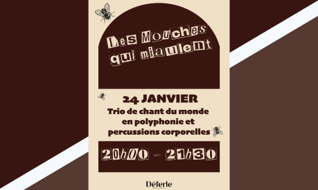ConcertLe samedi 24 janvier, de 20h à 21h30, un nouveau groupe arrive à la Déferle : Les Mouches qui Miaulent.
