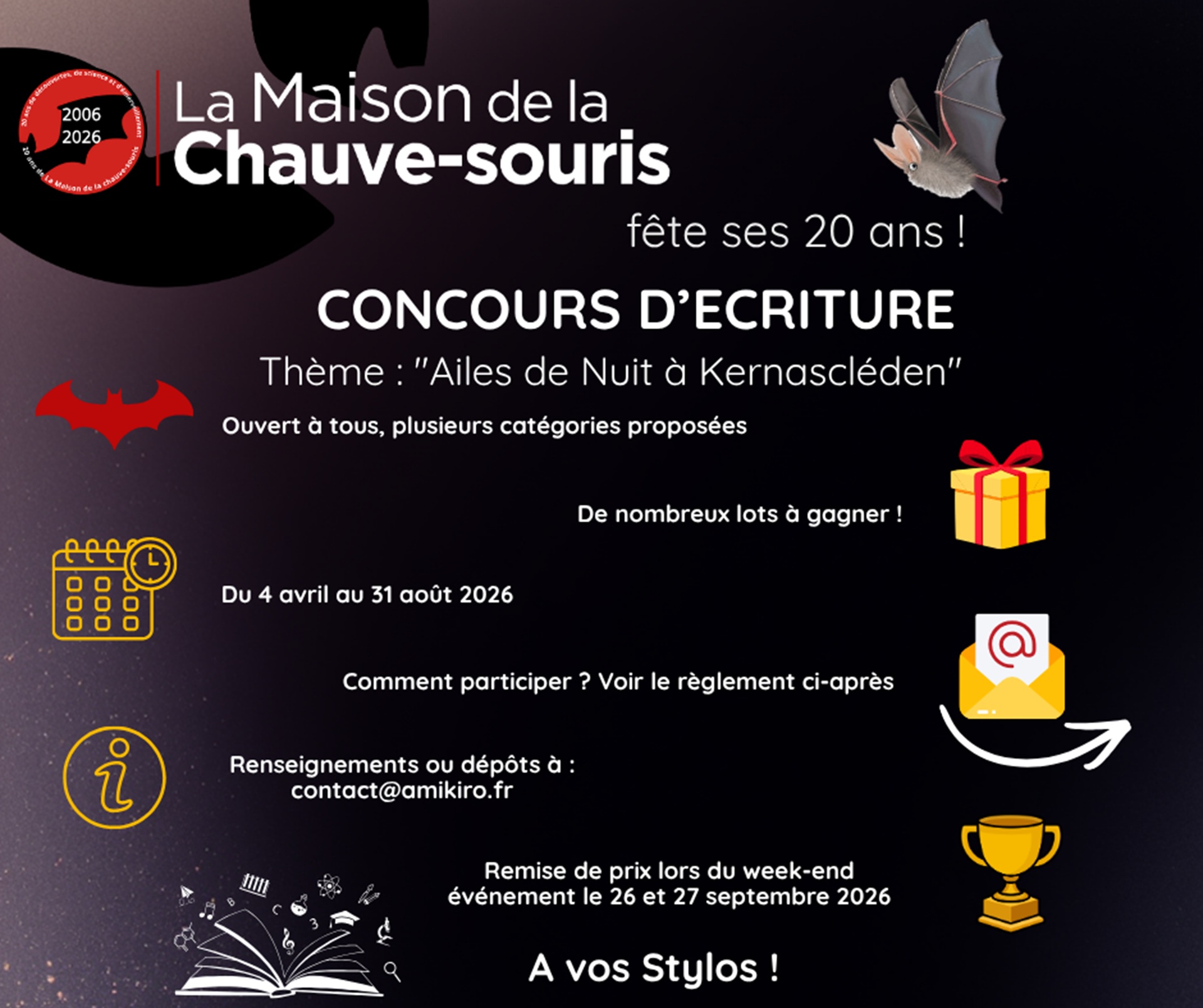Pour fêter les 20 ans de la Maison de la chauve-souris, nous vous proposons un concours d’écriture !