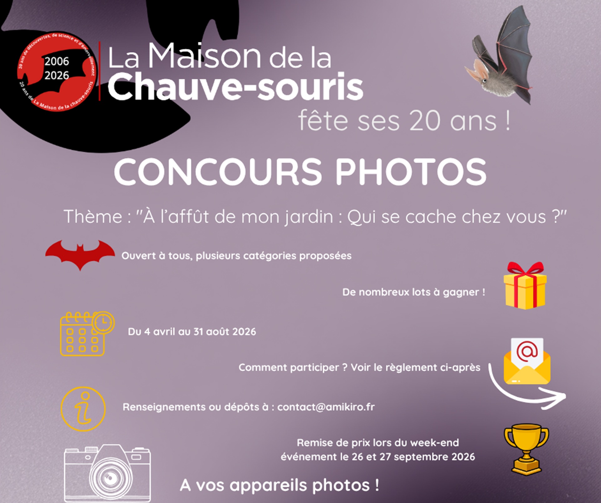 Pour fêter les 20 ans de la Maison de la chauve-souris, nous vous proposons un concours photos !