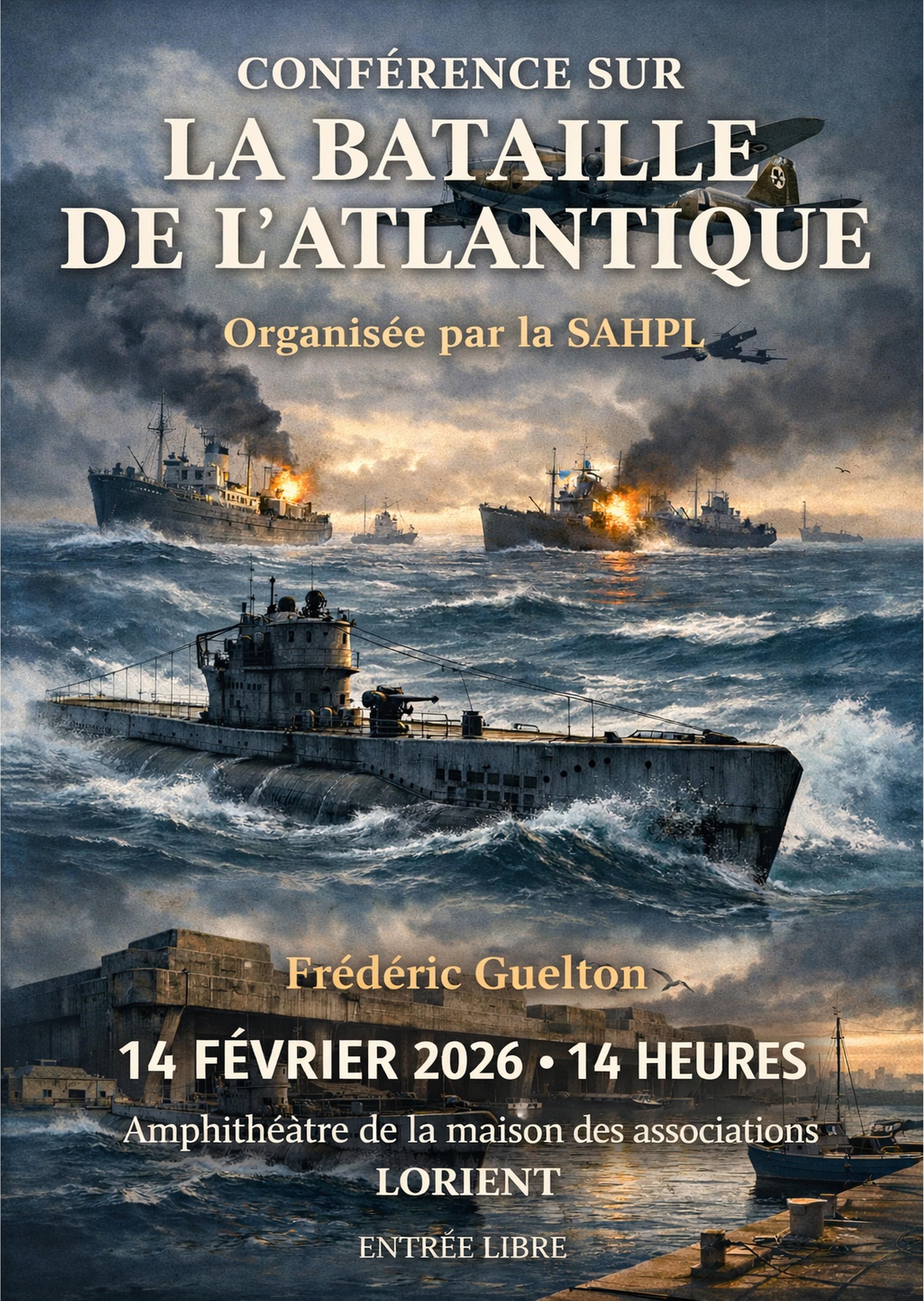Samedi, Frédéric Guelton nous éclairera sur la bataille de L’Atlantique, qui fut la plus longue de la deuxième Guerre mondiale et dont certains moments furent véritablement critiques pour la victoire alliée. Revivons cette période douloureuse de l’Histoire durant laquelle notre ville fut au cœur des évènements depuis la base sous-marine d’où opéraient les U-boot de l’amiral Karl Dönitz.