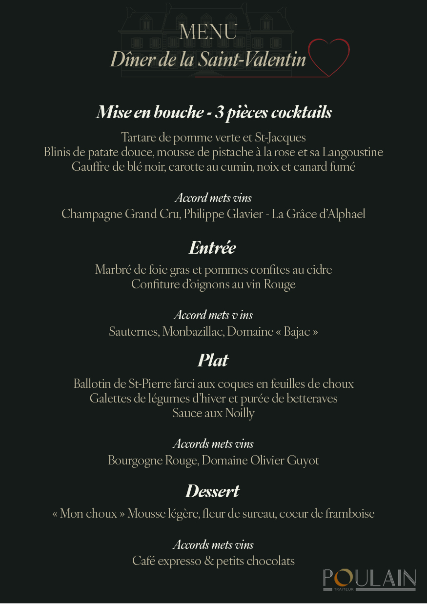 le tout accompagné d’un accord mets & vins soigneusement sélectionné à chaque étape.