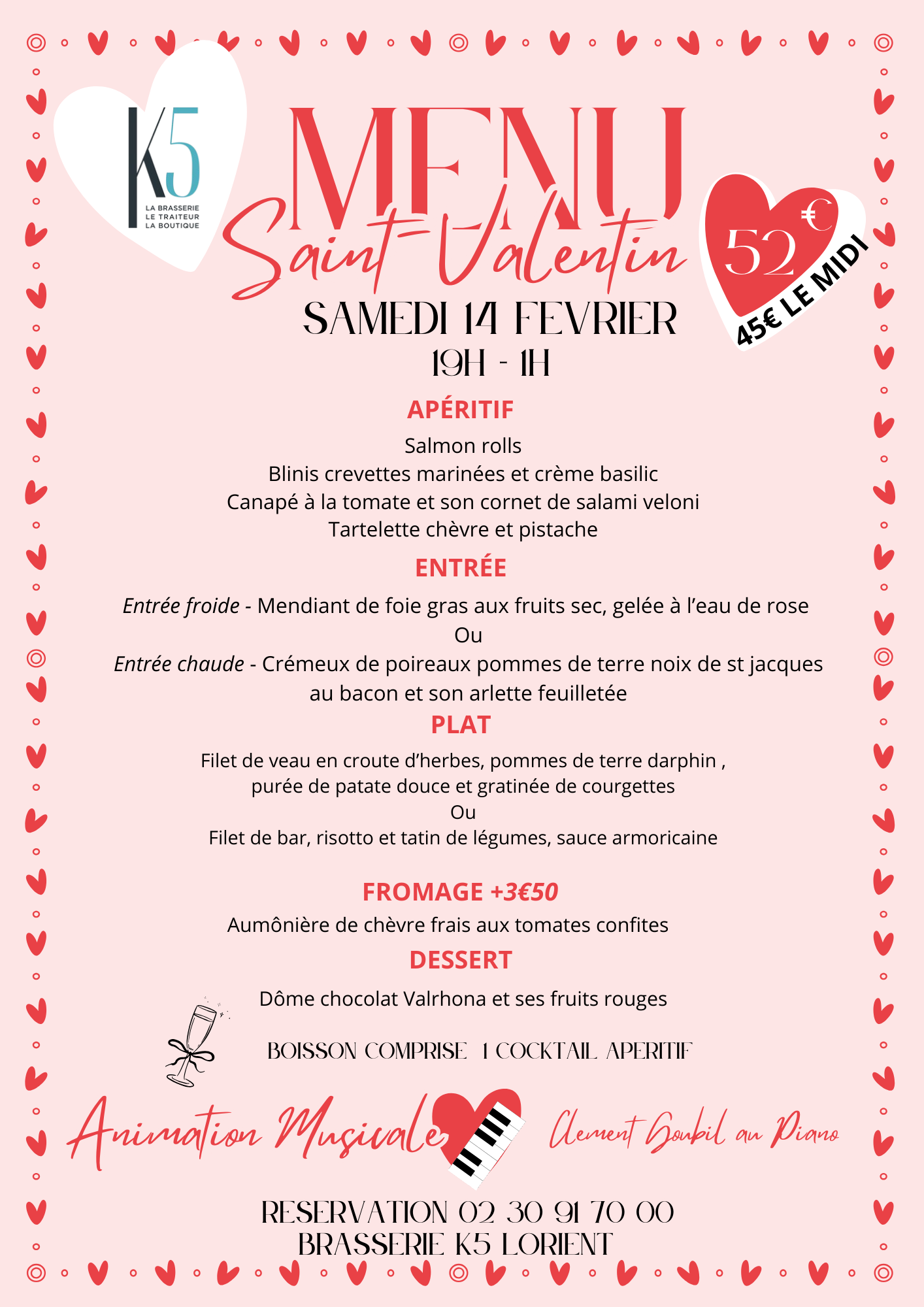 Diner saint valentin 14 fevrier 2026