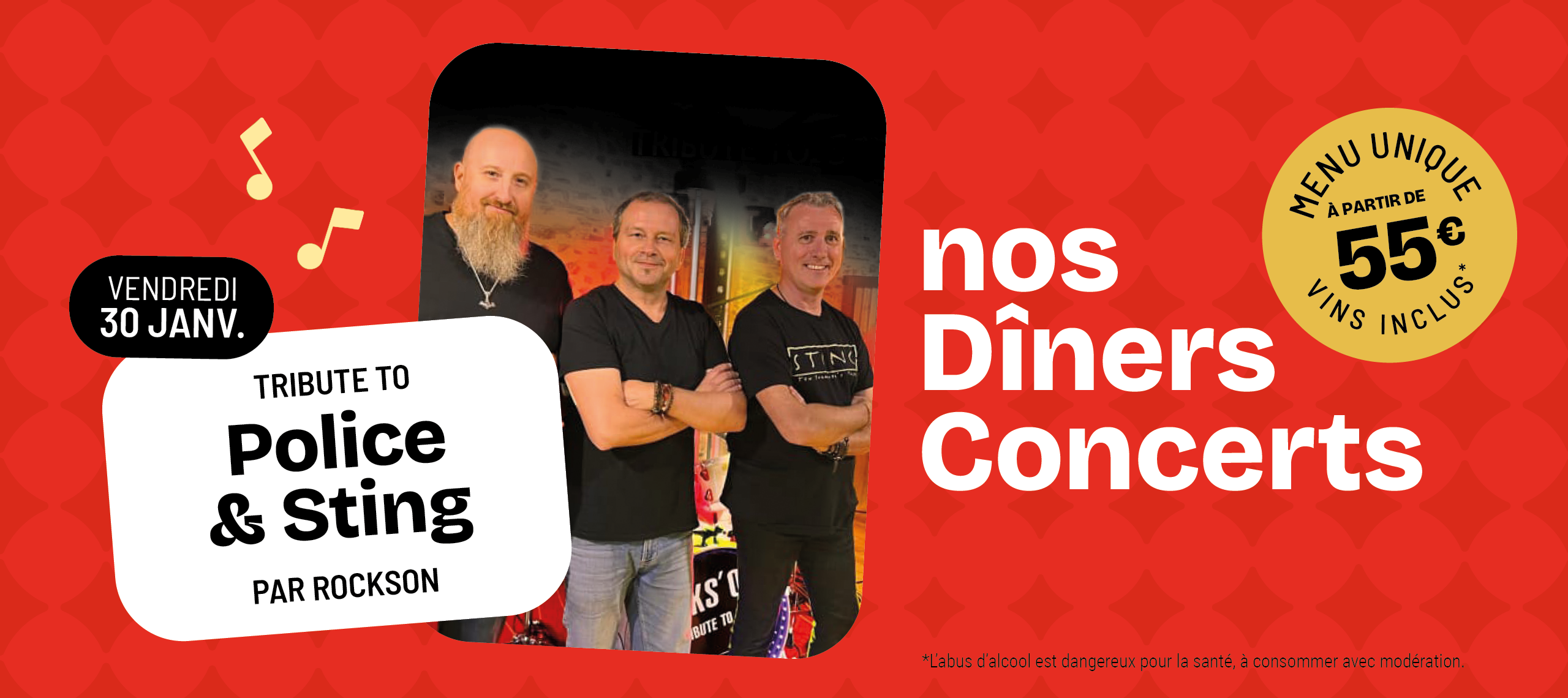 Lors d’un diner concert le 30 janvier au Kasino de Larmor Plage , le groupe Rockson interprètera les titres de Sting et du groupe police.