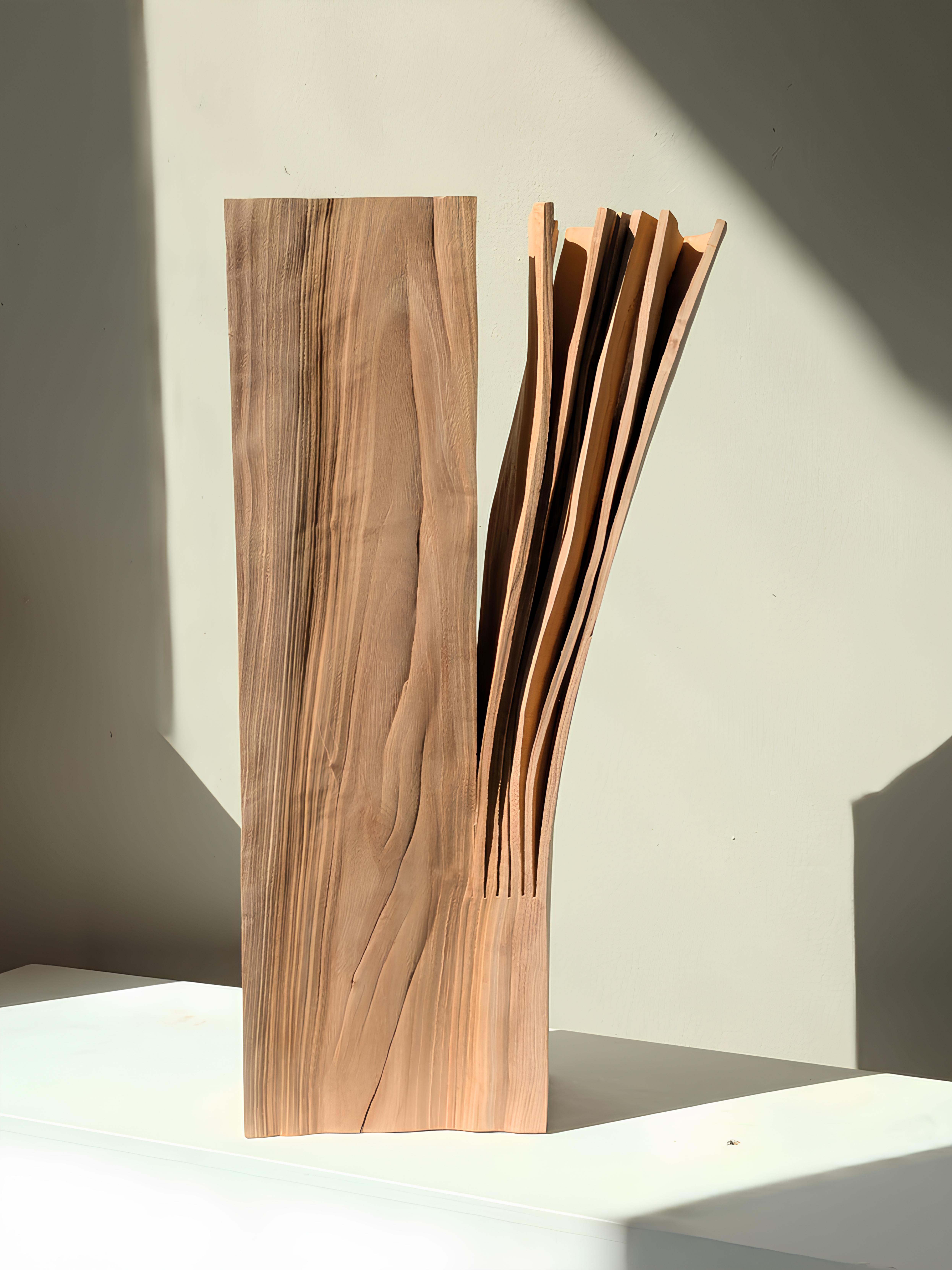 Exposition. Chaque pièce de bois est récupérée lors de l’abatage d’un arbre sur la Presqu’île de Rhuys où Yves Tilly a son atelier. Il entaille le bois encore vert avant que la perte de sa sève en déforme la rectitude. Une histoire singulière s’écrit dès lors, liée à la vie de l’arbre.