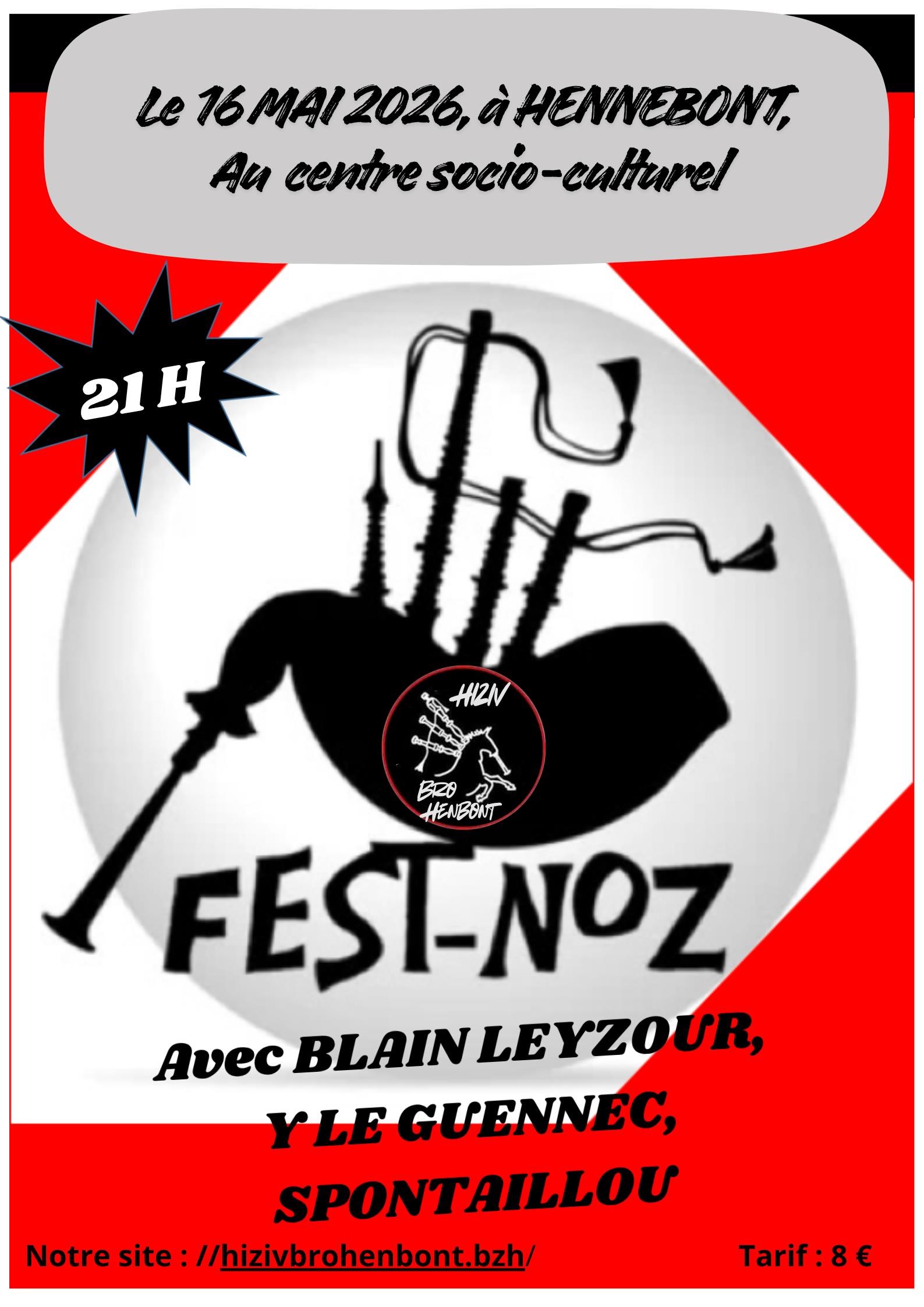 Fest-noz. Organisé par Hiziv Bro Henbont. Samedi 16 mai de 21 h à 0 h, centre socioculturel, 15, rue Gabriel-Péri, Hennebont. Tarif 8€.