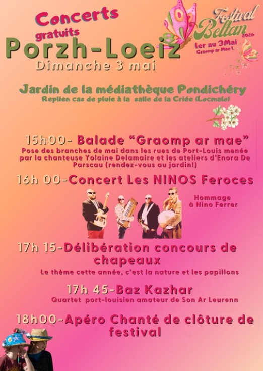 Le dimanche 3 mai à Port-Louis, le festival se poursuit au jardin de la médiathèque Pondichéry. Une procession partira à 15 h, suivie de concerts jusqu’à 18 h, avant un apéritif chanté de clôture.
