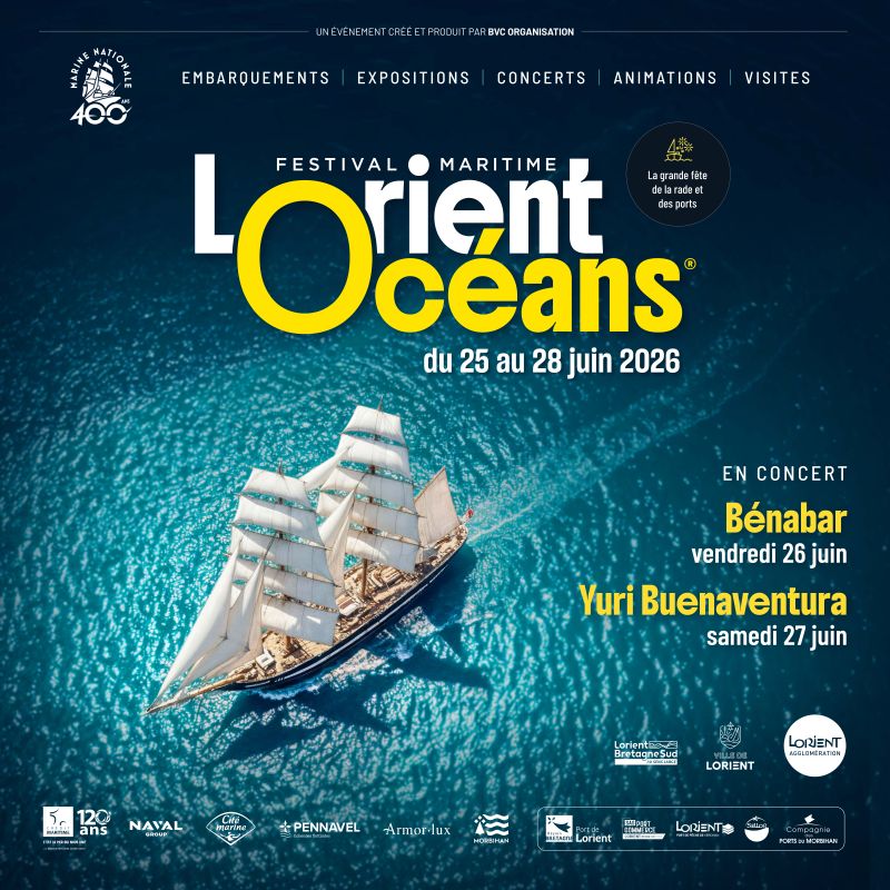 Pour sa 5e édition, Lorient Océans confirme son identité unique, entre fête maritime et festival traditionnel ! Visite du Belem, concerts de Bénabar et Yuri Buenaventura, démonstrations de la Marine Nationale à l’occasion des 400 ans, Parade maritime et sorties en mer, le festival lance la saison estivale en fanfare !Egalement au programme : des vieux gréements aux côtés de bateaux de pêche et de course, des animations ludiques et pédagogiques, des visites et des temps culturels dans toute la rade de Lorient, des actions à destination des professionnels, et bien sûr de la musique ! De la Pointe de Bernoulli, récemment rénovée, aux quais du port de pêche, en passant par le ponton du K3 et le Terre-plein Papin, c’est tout un village qui sortira de terre à la Pointe de La Base, du 25 au 28 juin !