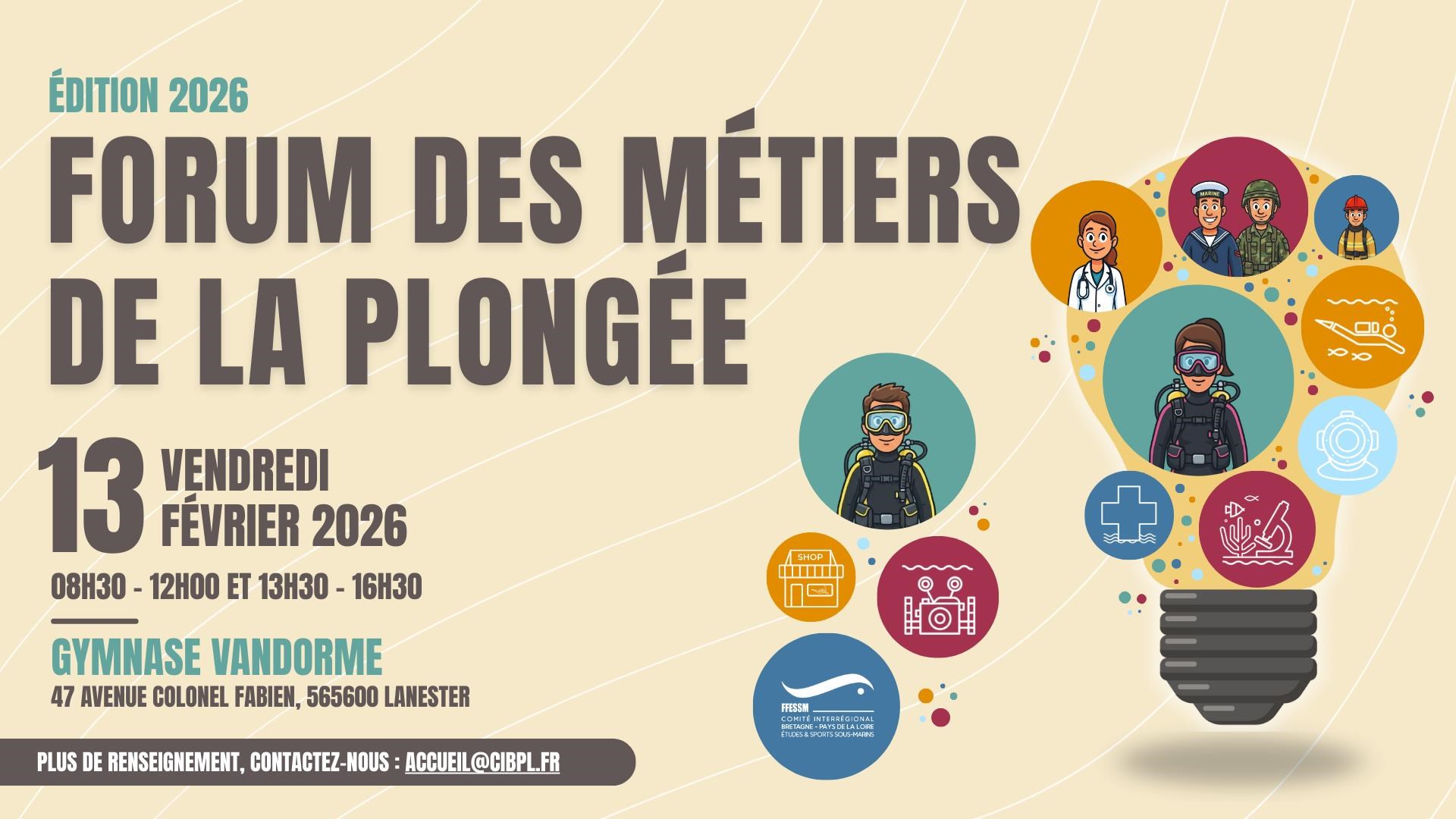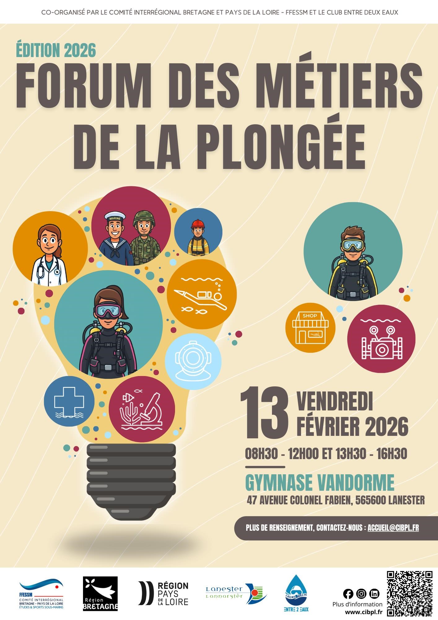 Passionné par le monde sous-marin ? Viens découvrir les métiers liés à la mer lors du Forum des Métiers de la Plongée, organisé par le CIBPL, le collège Jean Lurçat et le club Entre-2-Eaux.