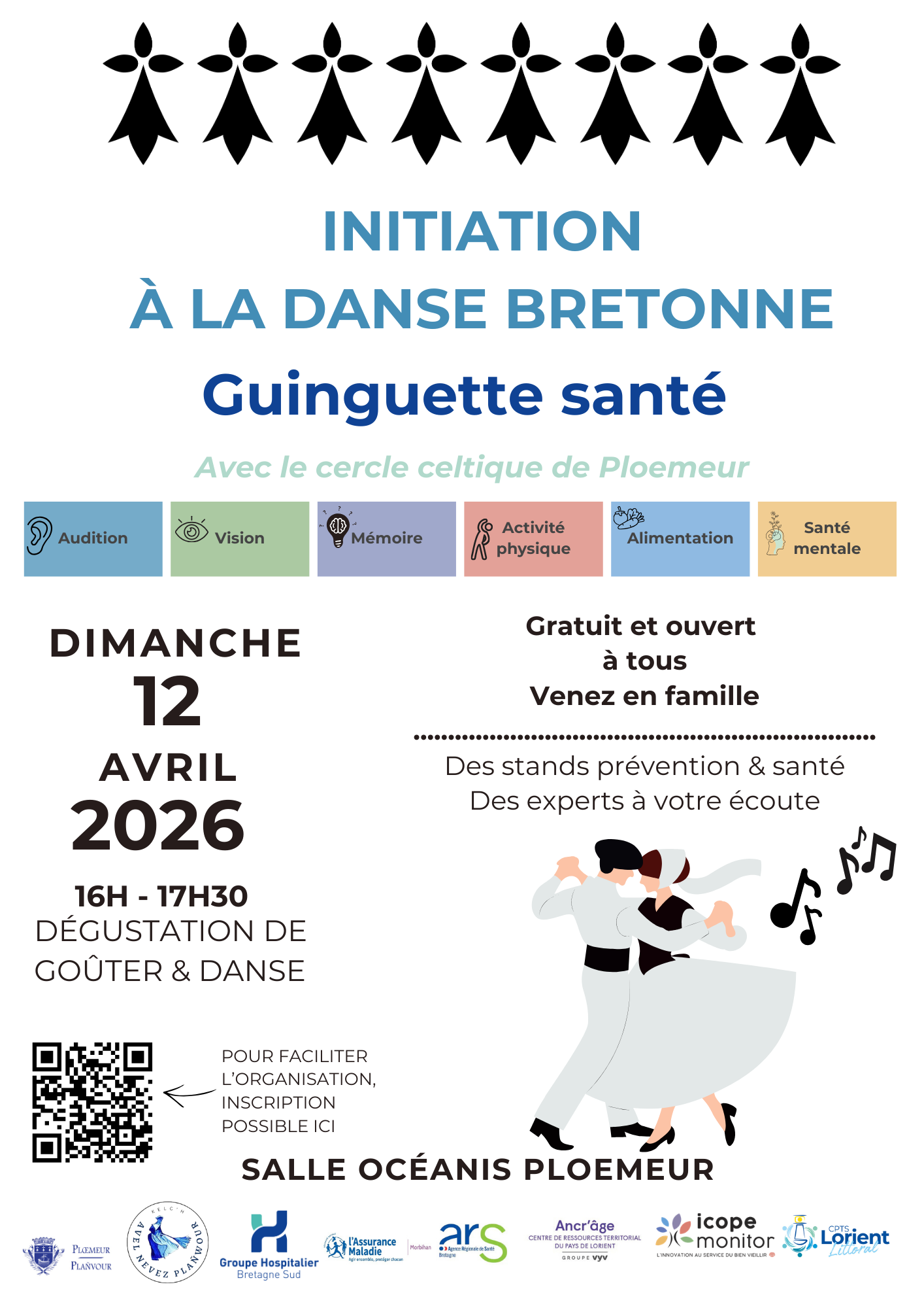Le dimanche 12 avril, de 16h à 17h30 à la salle Océanis à Ploemeur, participez à un événement convivial et gratuit autour du bien-être et de la prévention santé : initiation à la danse bretonne, goûter partagé, stands santé avec experts, pour échanger et s’informer.