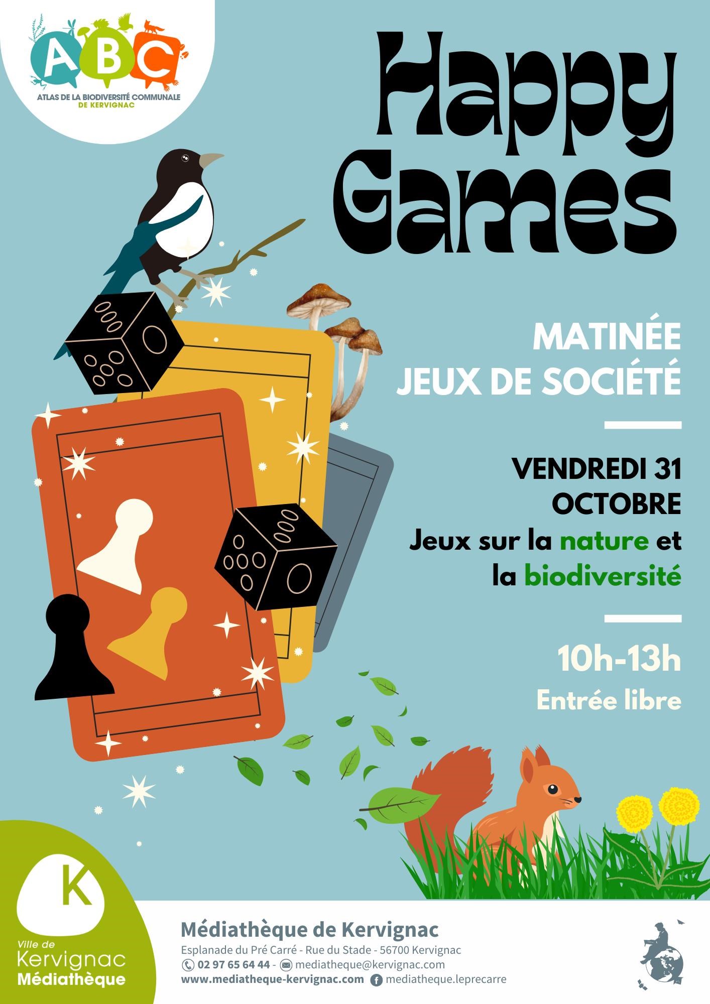 Pendant les vacances d’automne, la médiathèque propose une matinée pour découvrir des jeux de société sur le thème de la nature et de la biodiversité. Venez jouer en famille, entre amis ou en duo et tester des jeux de société, de 2 à 99 ans ! Opération noisette, Harmonies, Littoral, Nimalia, Trails, Forêt mixte… et bien d’autres jeux sont au programme de cette séance Happy Games ! Entrée libre et gratuite.