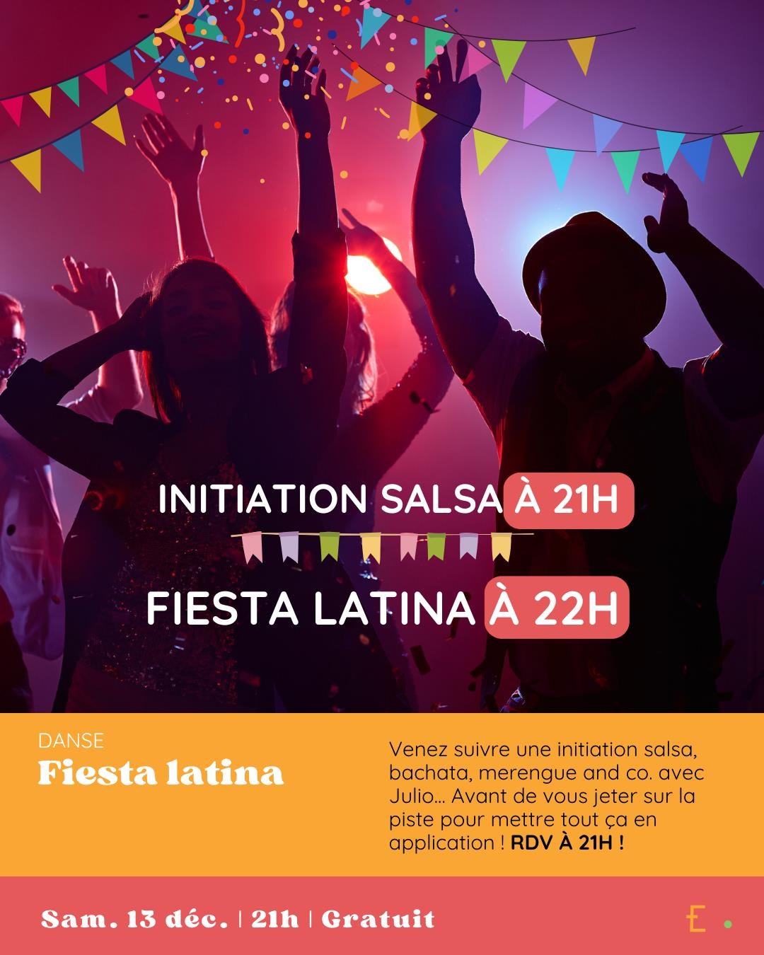 Soirée dansante. Venir suivre une initiation salsa, bachata, merengue and co avec Julio. L’initiation est suivie d’une fiesta latina pour mettre en application ce que vous aurez appris. Vendredi 12 décembre de 21 h à 1 h, Embarcadère, 22, boulevard Franchet-d’Esperey, Lorient. Gratuit. Contact : 07 67 50 52 53, contact@lembarcadere-lorient.org, http://www.embarcadere-lorient.org.