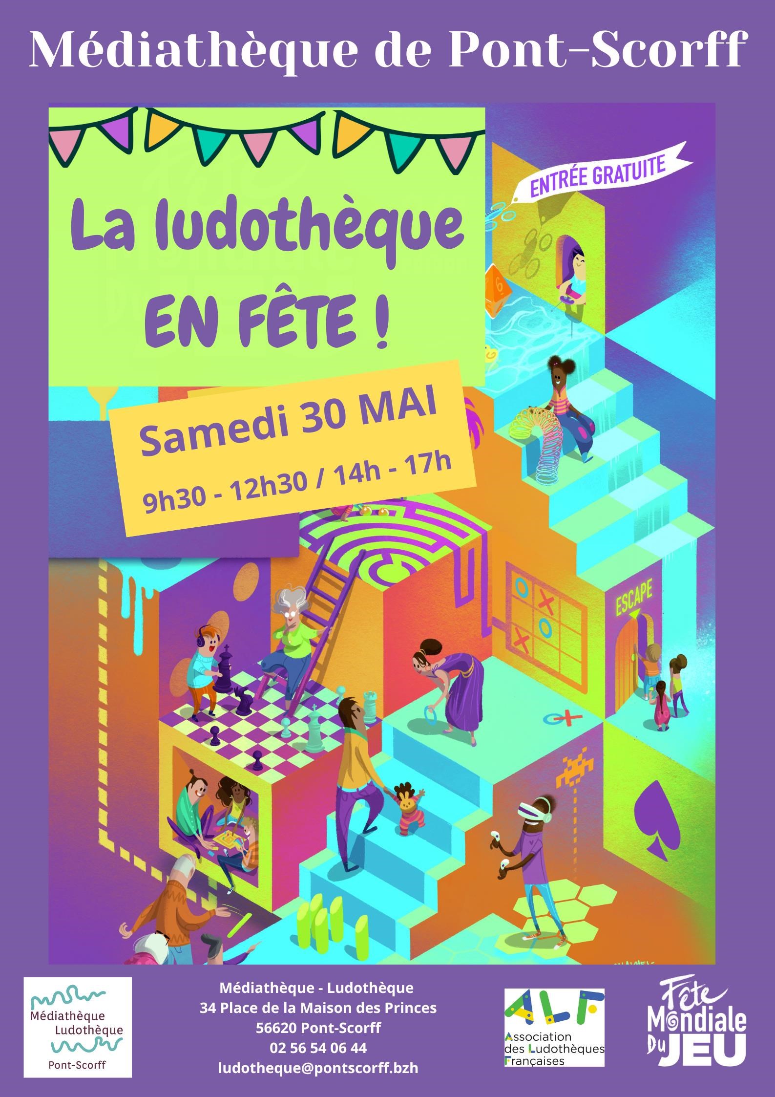 Animation. Journée festive à la ludothèque avec sculpture de ballons le matin, concours de puzzle et décoration de toupies l’après-midi. Et toute la journée, un coin thématique pour les enfants, des jeux géants, des jeux d’adresse extérieur. Buvette tenue par Tous Azimuts. Samedi 30 mai de 9 h 30 à 17 h, médiathèque-ludothèque, 34, place de la Maison-des-Princes, Pont-Scorff. Gratuit. Contact : 02 56 54 06 44, ludotheque@pontscorff.bzh, https://calliope.bzh/.