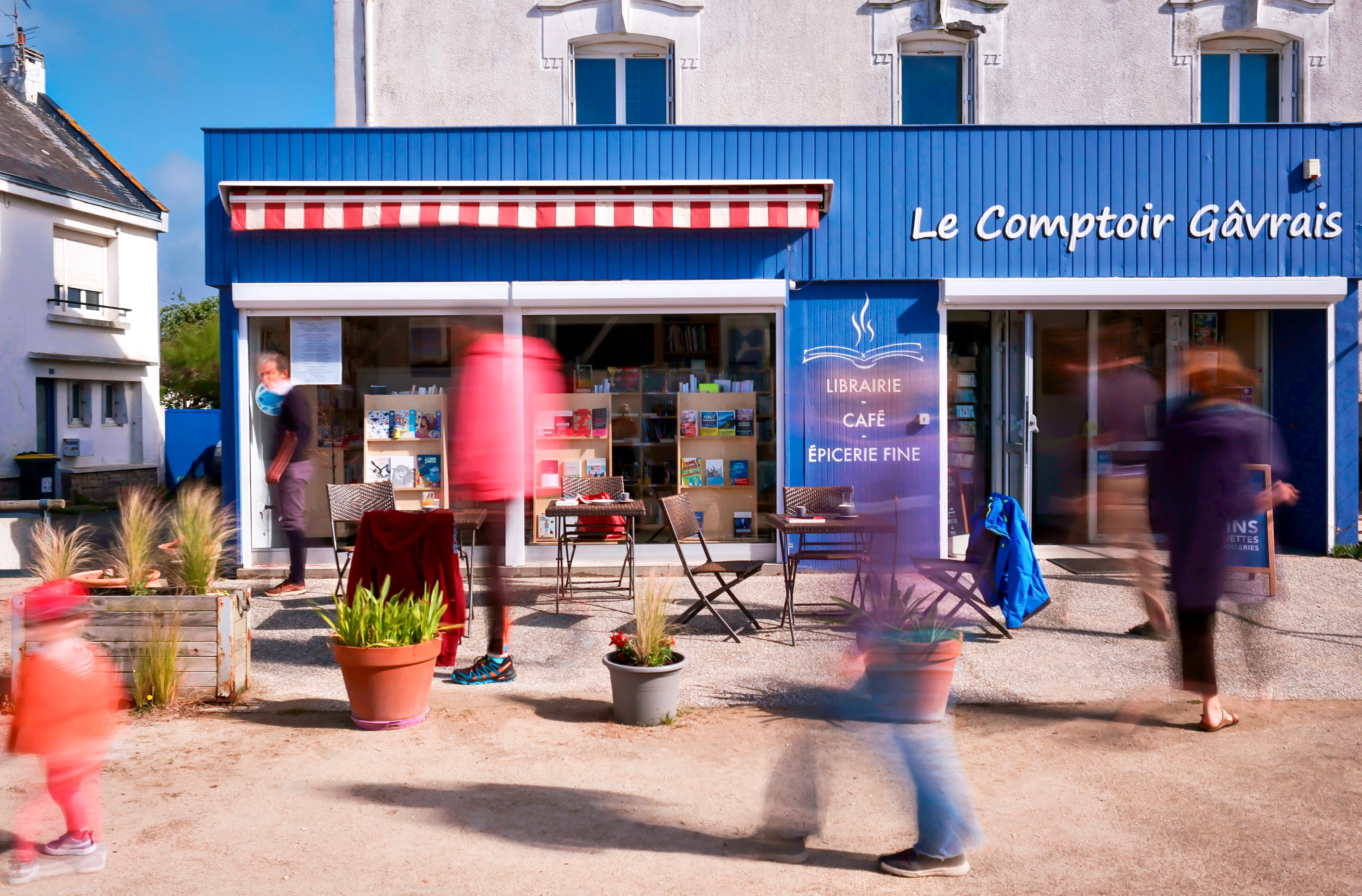 Le Comptoir Gâvrais est un café-librairie indépendant. Si le commerce existe depuis de nombreuses années, il fut totalement réaménagé au printemps 2024 pour ré-ouvrir sous de nouvelles couleurs. Ce lieu convivial d’échanges invite à la lecture, aux discussions et aux rencontres, dans une ambiance chaleureuse et détendue ; il se compose :