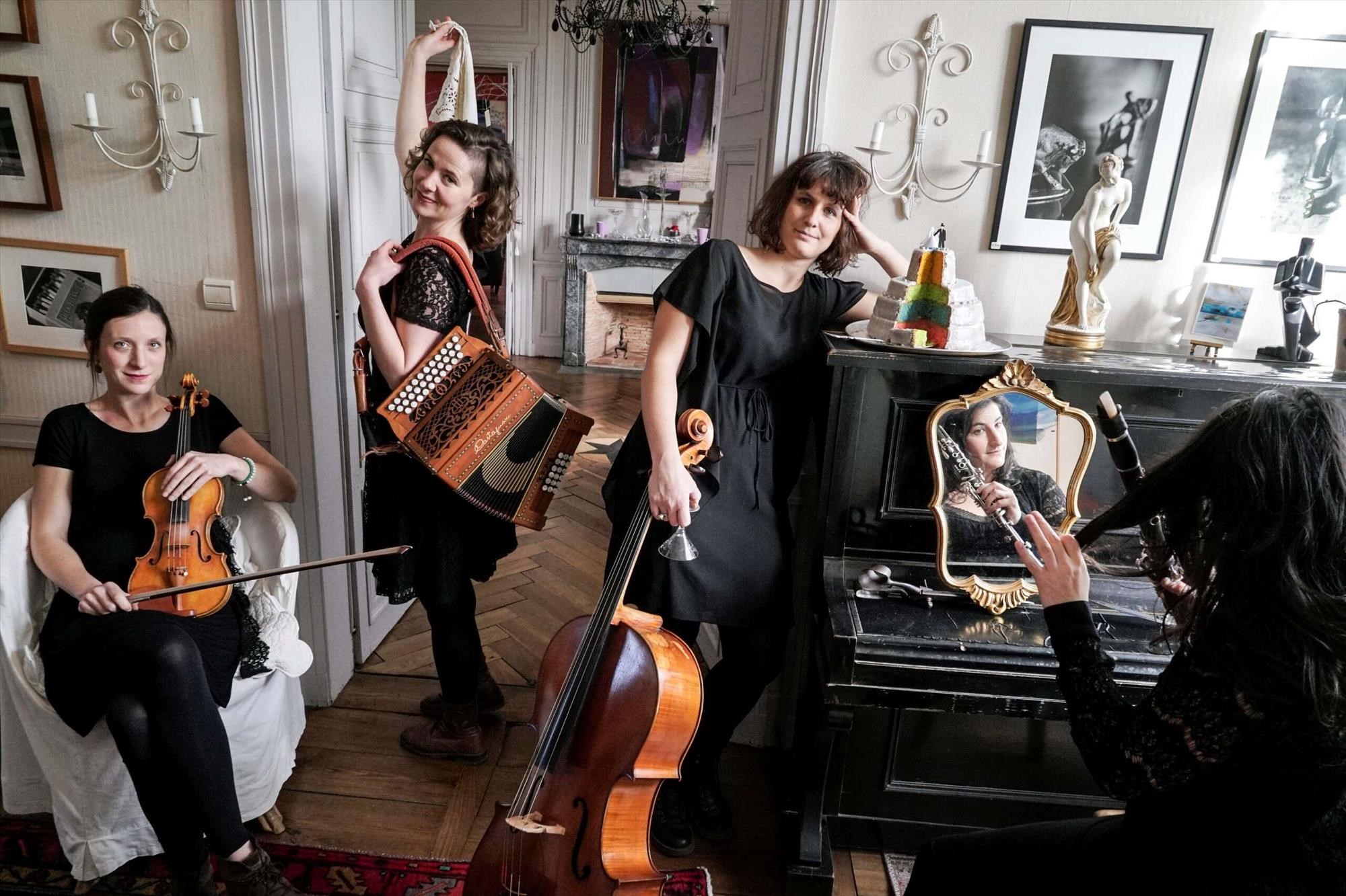 C’est au son d’une clarinette, d’un accordéon, d’un violon et d’un violoncelle, accompagné de chants yiddish intimistes et engagés, que ce quatuor féminin propose une musique klezmer profonde et virevoltante.