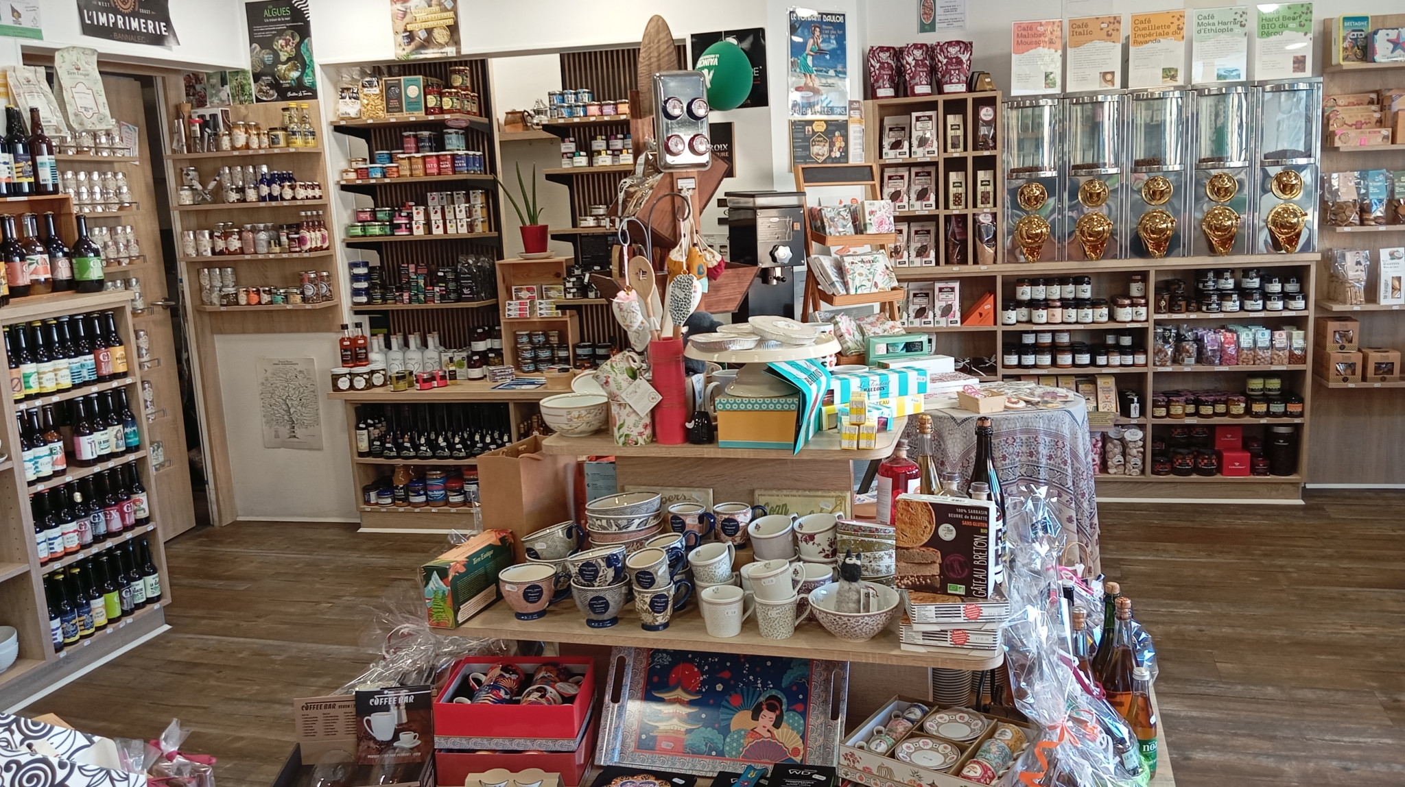 Produits locaux (biscuits sucrés et salés, conserves de la mer et de la terre, chocolats, confiseries, bières, alcools, kari-gosse, etc…) sélectionnés pour leur qualité et leur goût. Nous vous proposons les thés Christine DATTNER, ainsi que des cafés en vrac, moulus à la demande. Au rayon frais, suggestions apéritives, des poissons fumés de l’Ile de Groix.Venez déguster un thé, parmi notre sélection, ou un café sur notre terrasse. Vous trouverez également le Keryoun (gâteau breton au blé noir).