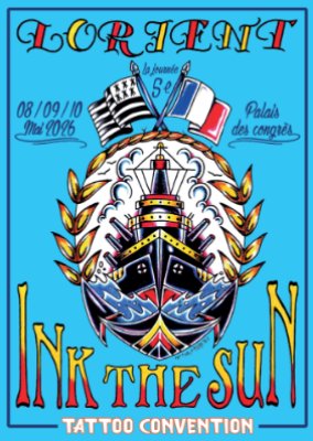 Nouvelle édition LORIENT Ink The Sun , Nouvelle organisation , 50 Artistes ,stands, Barber ,exposition Hommage Gilles de BREST « venez vibrer au rythme des machines et du talent » on vous attend nombreux les 8,9,10 Mai au Palais des Congrès de LORIENT entrée 5€ jour