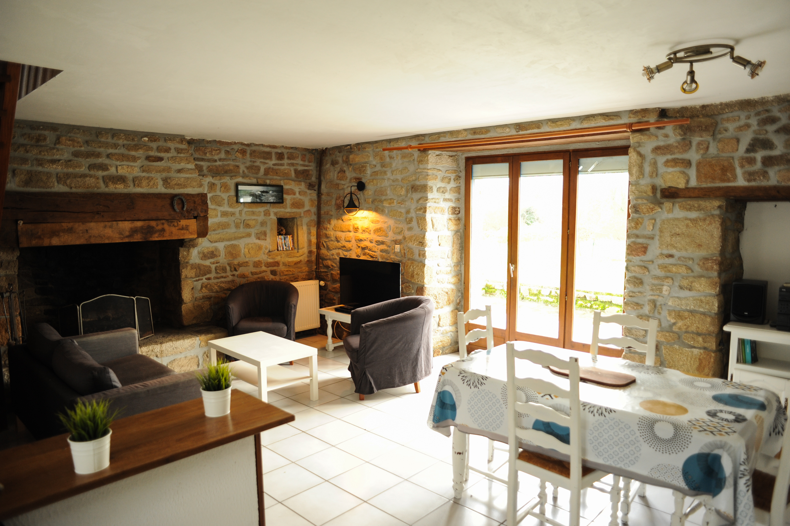 Vous séjournerez dans une longère bretonne typique, aux murs de pierres apparentes, rénovée avec soin.