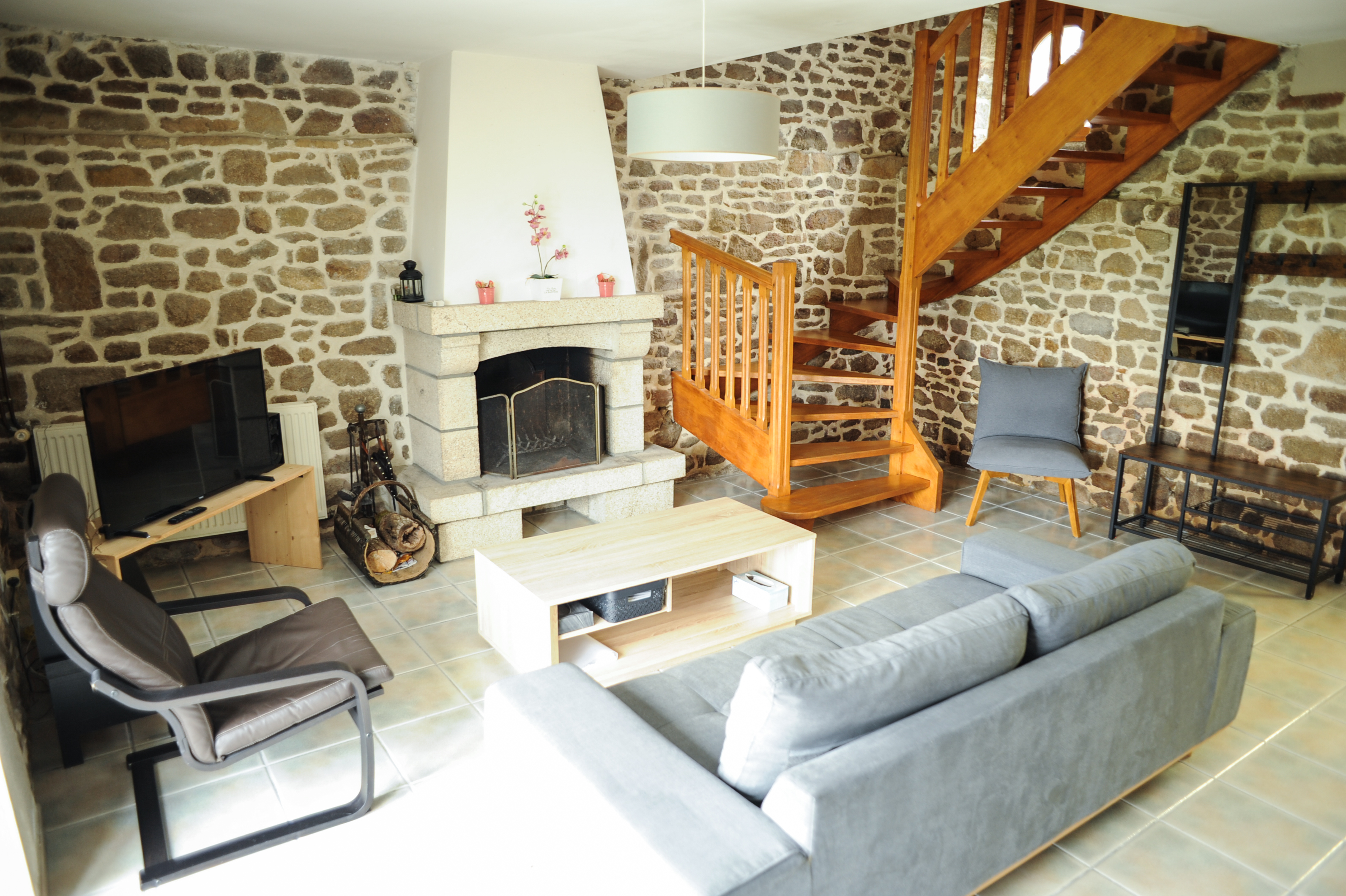 Vous séjournerez dans une longère bretonne typique, aux murs de pierres apparentes, rénovée avec soin.