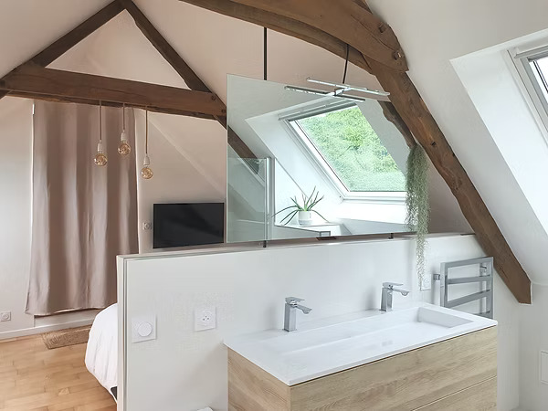 À Brandérion, dans le calme d’un hameau champêtre, découvrez Neizh ar Kaouenn, un gîte de charme classé 4 étoiles, pensé pour se retrouver, se ressourcer, et profiter d’une Bretagne authentique. Cette maison traditionnelle entièrement rénovée peut accueillir jusqu’à 8 personnes, dans une ambiance chaleureuse, confortable et élégamment décorée.