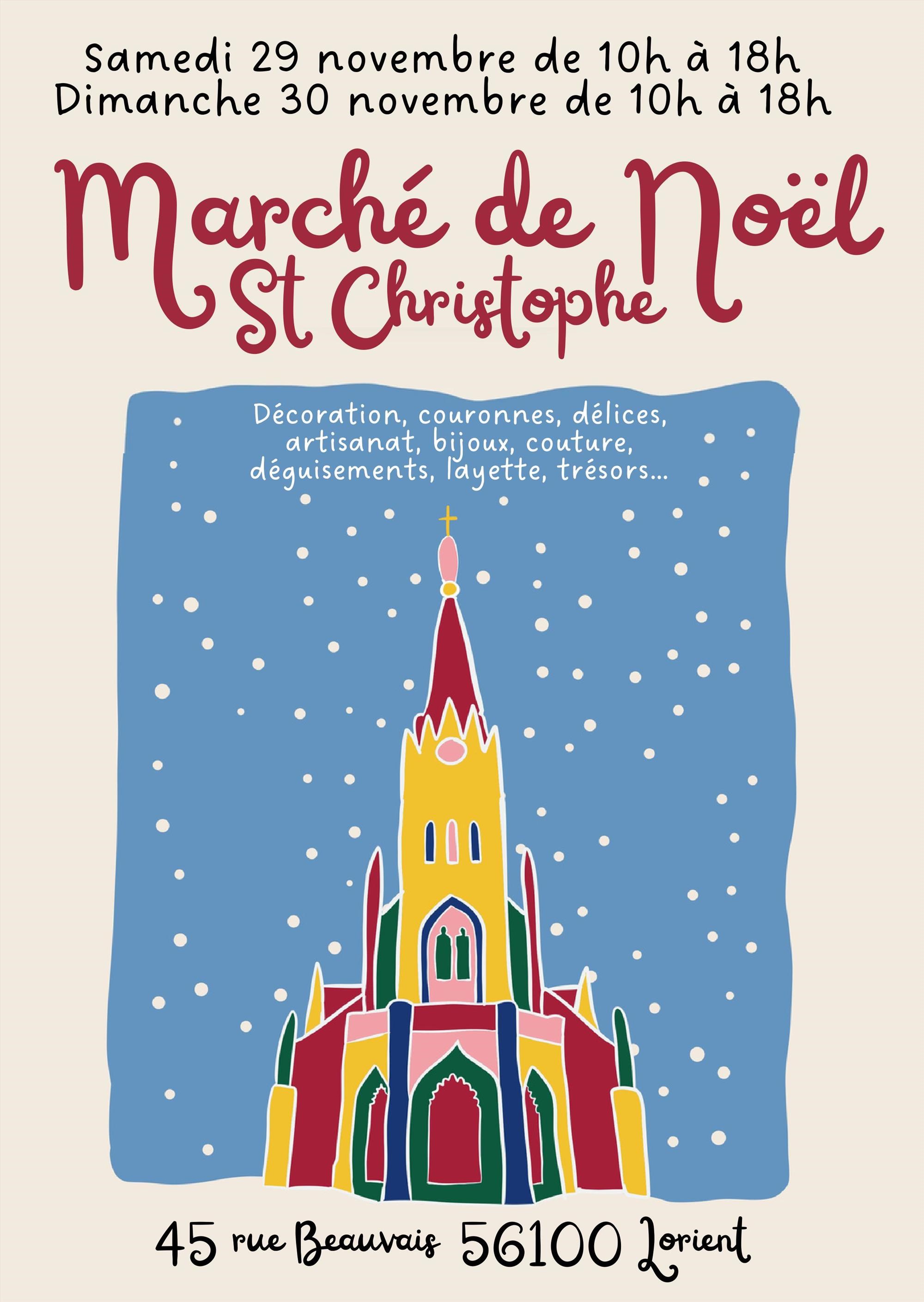 Marché de Noël. La magie de Noël s’invite à Kerentrech. Créations artisanales, originales et très lumineuses pour décorer la maison, bijoux, porcelaine, layette, couture à offrir. Crèches, délices, confitures variées, gourmandises en tous genres. Jouets et livres d’enfants d’occasion. Du samedi 29 au dimanche 30 novembre, de 10 h à 18 h, salles paroissiales, 45, rue Beauvais, Lorient. Gratuit. Contact : 09 86 39 68 44, secretariatsaintchristophe56@gmail.com.