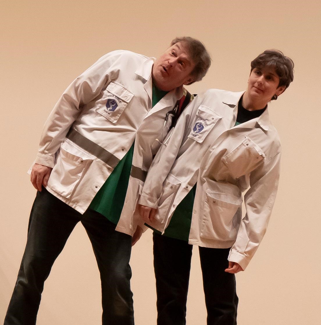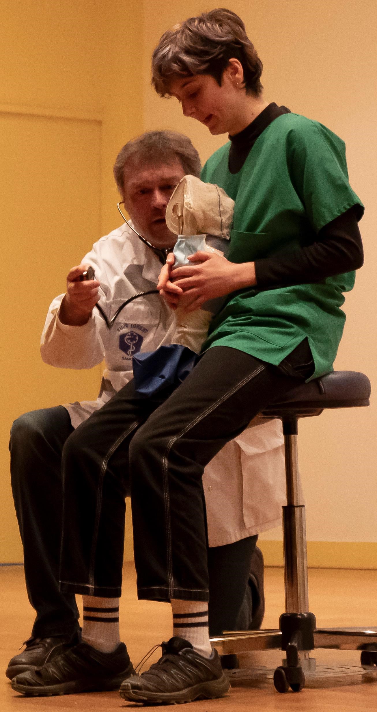 Nous y avons mêlé textes et chansons, arts plastiques et jeu, en détournant des objets usuels du monde hospitalier en accessoires de jeu.