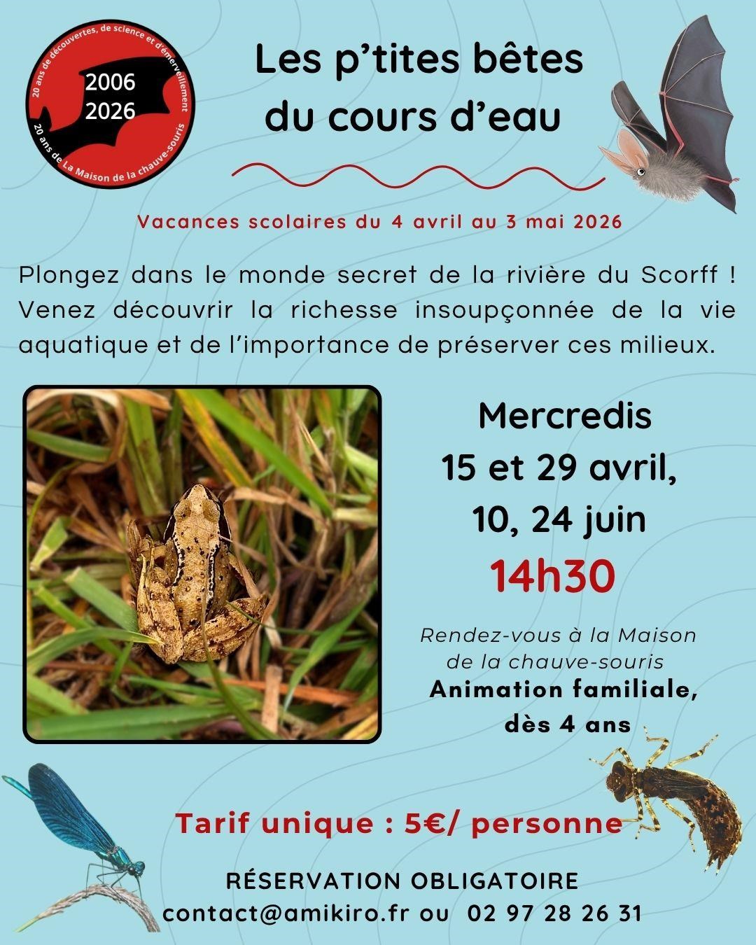 Plongez dans le monde secret de la rivière du Scorff ! Accompagnés d’une animatrice nature et équipés de boîtes loupe et de fiches d’identification, partez à la découverte de monde des petits êtres vivants qui peuplent nos cours d’eau : larves d’insectes, invertébrés aquatiques, poissons essentiels à l’équilibre de nos écosystèmes. Ils n’auront plus de secret pour vous ! Venez découvrir la richesse insoupçonnée de la vie aquatique et de l’importance de préserver ces milieux.
