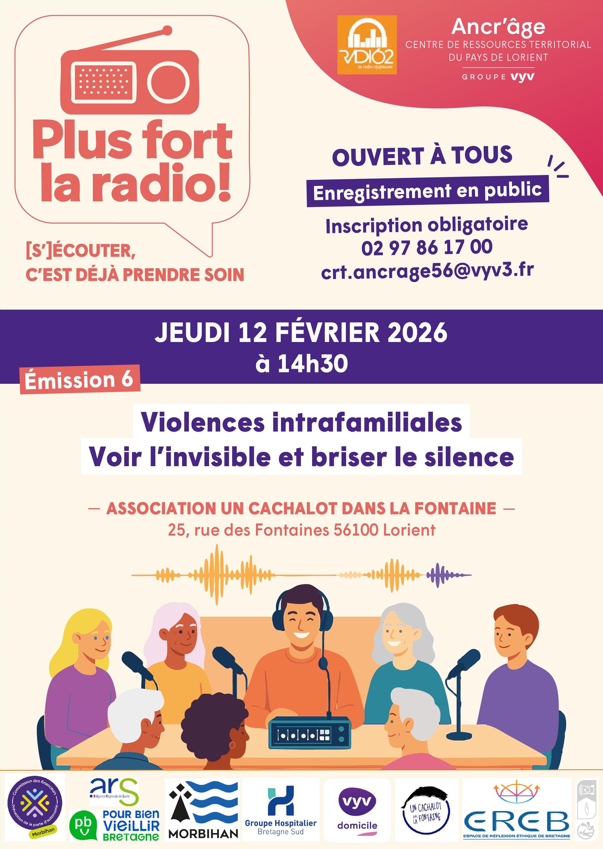 Le CRT ancr’âge vous invite à assister à l’enregistrement radio de l’émission « Plus fort la radio ! » sur le thème des violences intrafamiliales : voir l’invisible, briser le silence.