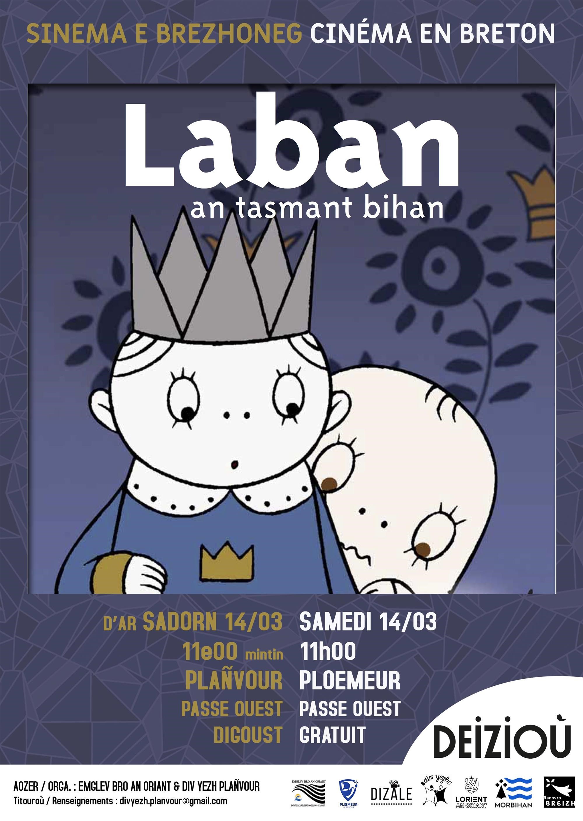 Film d’animation. Laban an tasmant bihan, Laban le petit fantôme. Projection ouverte à tous, en partenariat avec Emglev bro an Oriant. Samedi 14 mars de 11 h à 12 h, espace culturel Passe-Ouest, 11, rue de Kervam, Ploemeur. Gratuit. Contact : divyezh.planvour@gmail.com.