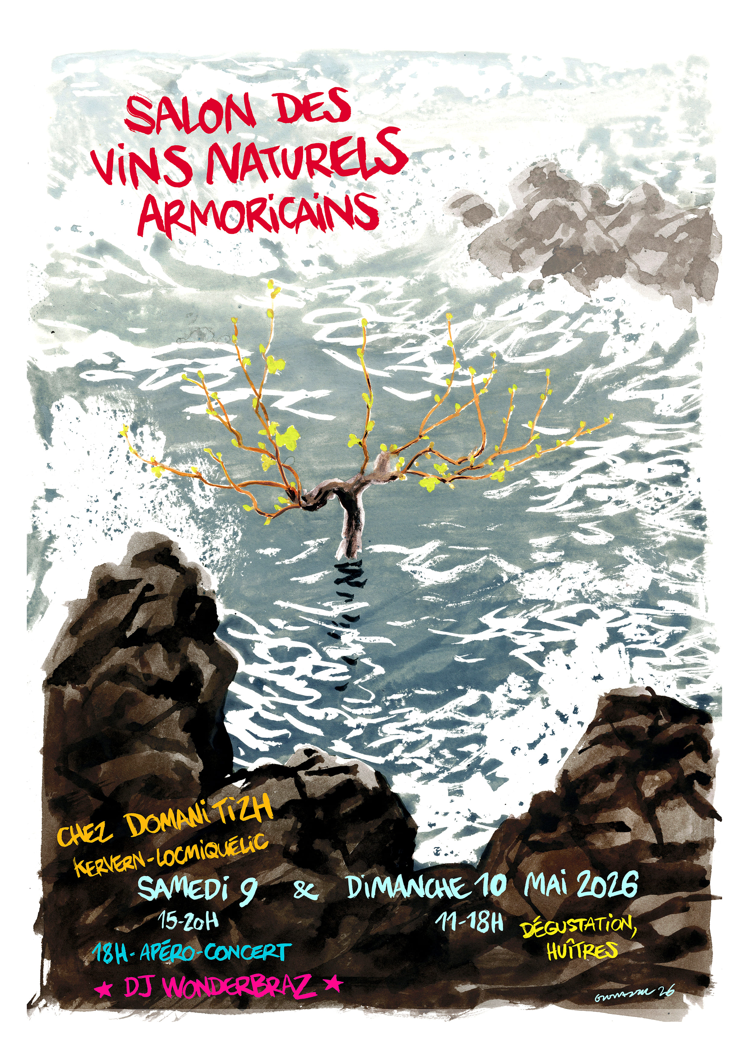 L’idée, un salon qui réunit des vignerons travaillant en vinification naturelle sur un même massif armoricain allant de La Roche Jaune au Landreau en passant par Groix ou Locmiquélic. L’occasion de goûter des vins issus de ce nouveau territoire viticole qu’est une partie de la Bretagne et ceux issus de cette autre partie du massif armoricain.