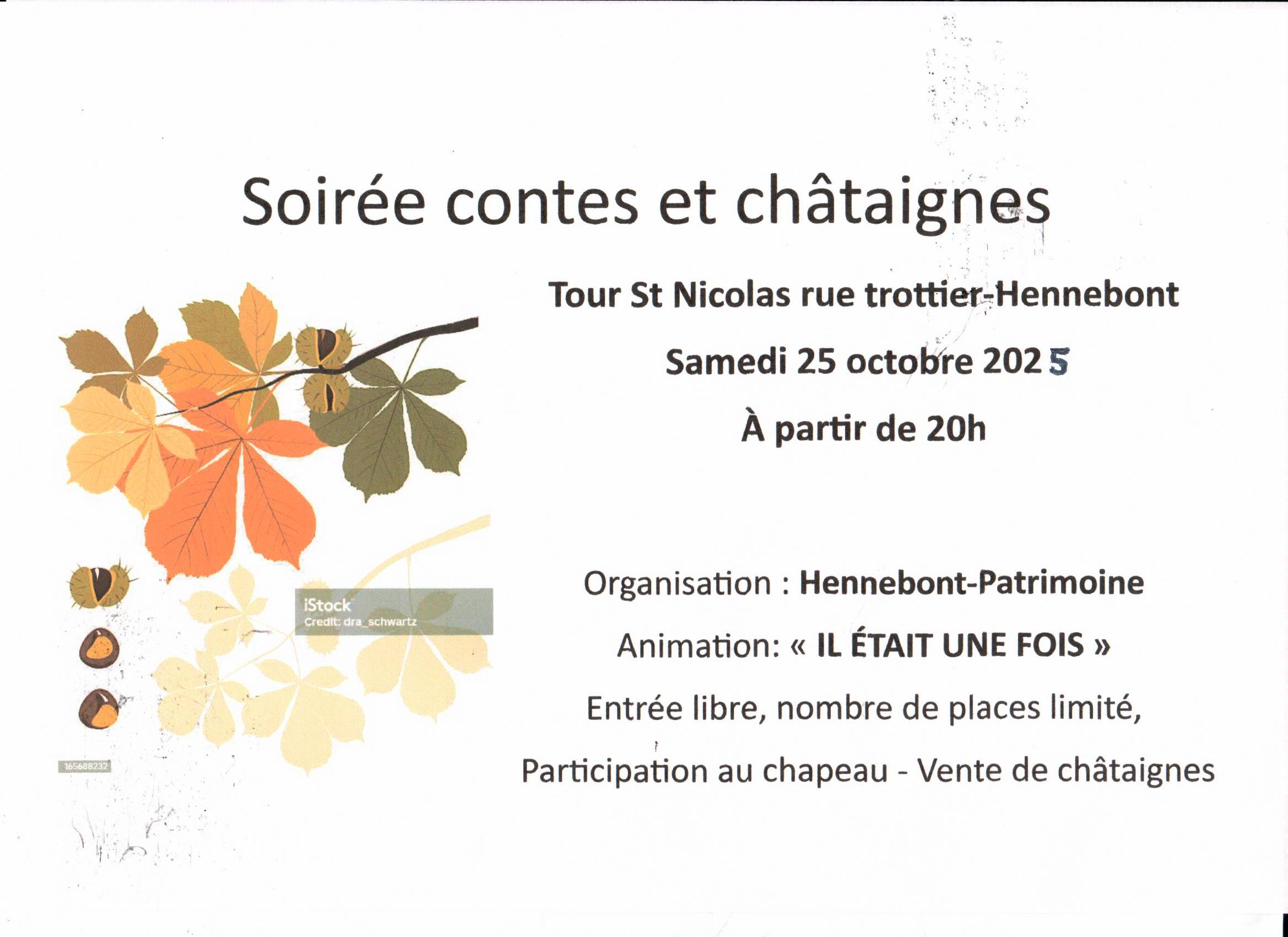 Cette soirée est organisée par Hennebont-Patrimoine. Participation au chapeau. Sur place, vente de châtaignes.