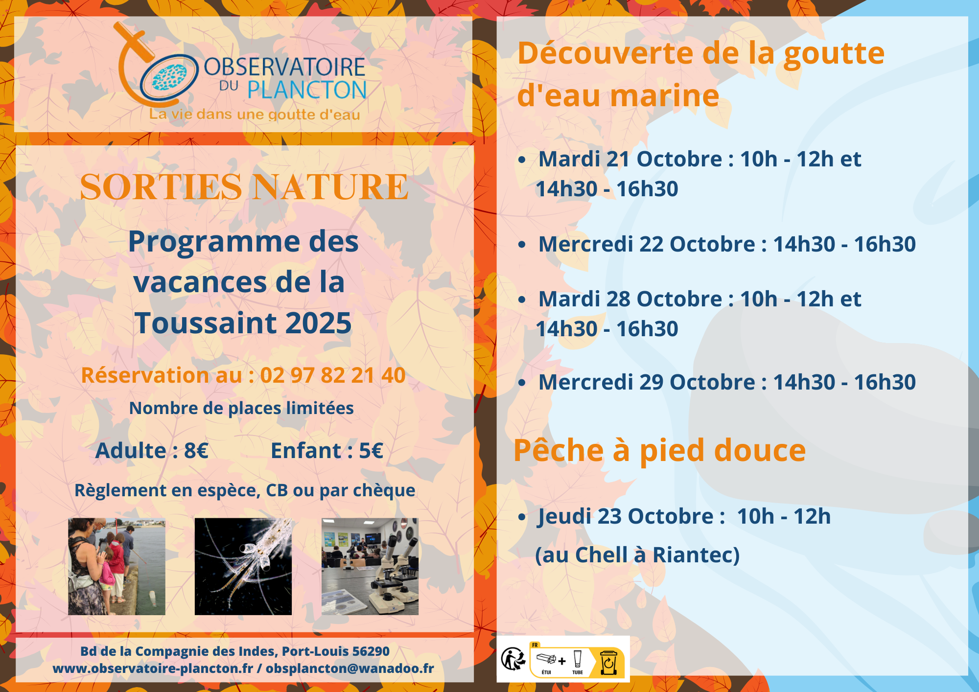 Venez à la rencontre de l’étrange univers du plancton. Vous découvrirez une vie mystérieuse et passionnante, dans une simple goutte d’eau. Après un temps de pêche sur la côte du Lohic, la découverte du Plancton se fait sur grand écran et sur microscopes individuels. Nos médiateurs scientifiques sauront vous amener à prendre conscience de son importance vitale pour la Planète et de son rôle dans la biodiversité.