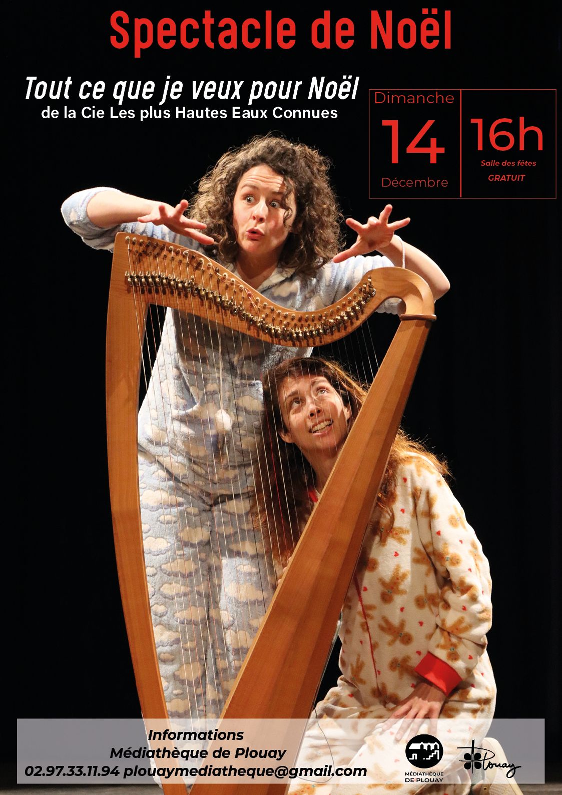 Un spectacle familial de la compagnie « Les Plus Hautes Eaux Connues » à partir de 3 ans.Tout ce que je veux pour Noël, c’est l’histoire de Sam et Aïda, deux sœurs qui, ce matin-là, se réveillent très joyeuses. C’est le jour de Noël et c’est la fête ! Mais soudain, Aïda, la plus jeune, est atteinte d’un étrange phénomène. Elle refuse tout net de sortir de sa chambre, au grand dam de sa grande sœur, Sam ! Ne pas vouloir fêter Noël, on n’a jamais vu ça ?